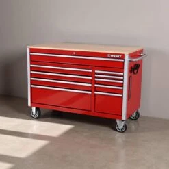 Husky Tool Storage 52 In. W X 25 In. D 10-Drawer Standard Duty Gloss Red Mobile Workbench Tool Chest