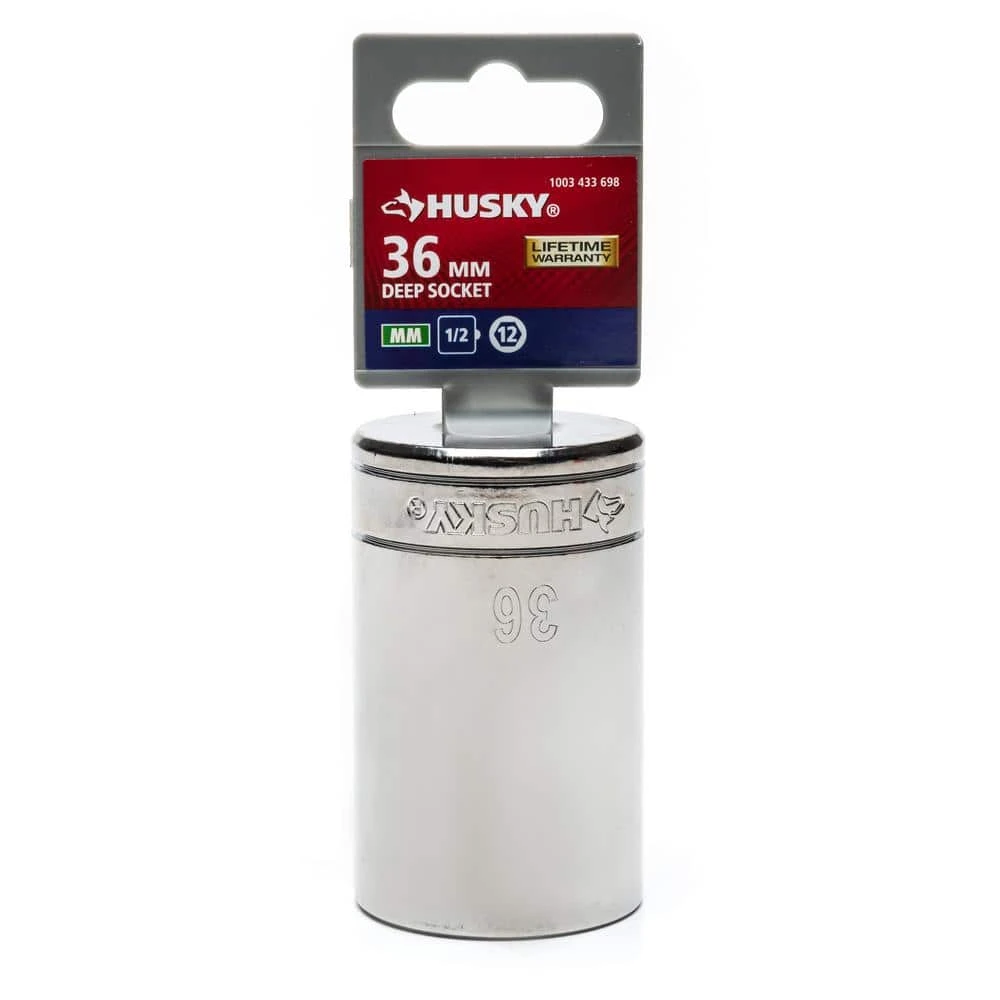 Husky 1/2 in. drive sockets are manufactured from chrome alloy steel and heat treated for added strength and wear protection, providing durability for a lifetime of hard use. Each socket features chamfered lead-ins for quick and easy placement onto fasteners every time. Their polished chrome finish resists rust and corrosion and easily wipes clean of oil and dirt.