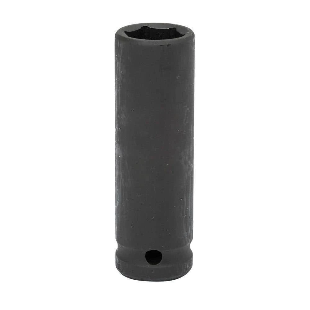 The Husky 1/2 in. Drive 17 mm 6-Point Deep Impact Socket is designed for use with a 1/2 in. drive tool. Husky 1/2 in. drive Impact Sockets are manufactured from chrome molybdenum alloy steel and designed to withstand rigors of heavy-duty use. Size markings have been hard stamped into the sockets for quick and easy identification that will never wear away. Each socket features chamfered lead-ins on both ends allowing for easy attachment to drive tools and placement onto fasteners. The pin hole at the base of each socket is for use with pin and O-rings for a secure attachment to drive tools. Husky deep impact sockets also feature a shallow broach design to prevent fasteners from getting lodged deep in the socket. The oiled, black oxide finish provides maximum corrosion resistance for a longer life.