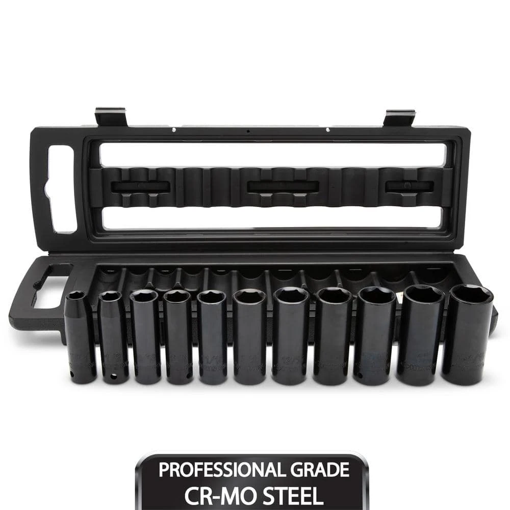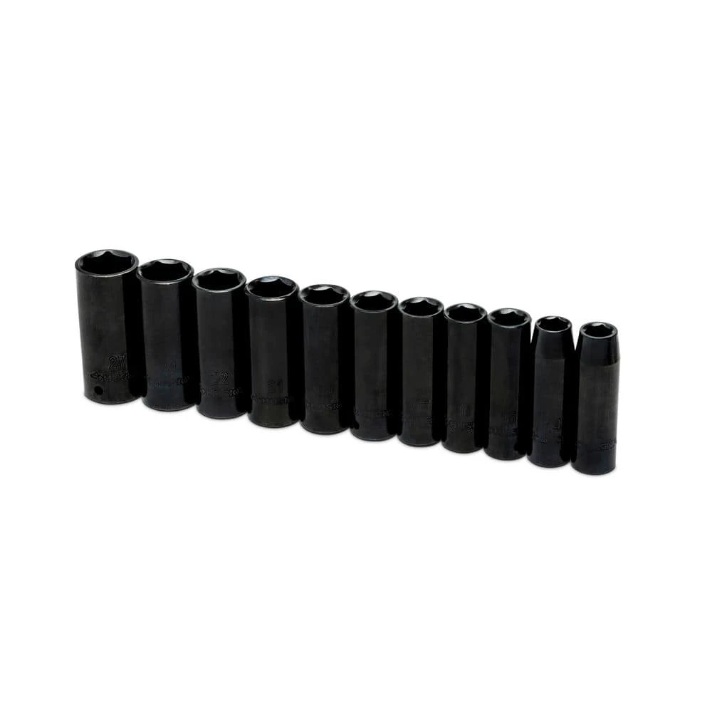- 11-piece set includes deep impact sockets in metric sizes 13mm, 14mm, 15mm, 16mm, 17mm, 18mm, 19mm, 21mm, 22mm, 24mm, & 27mm