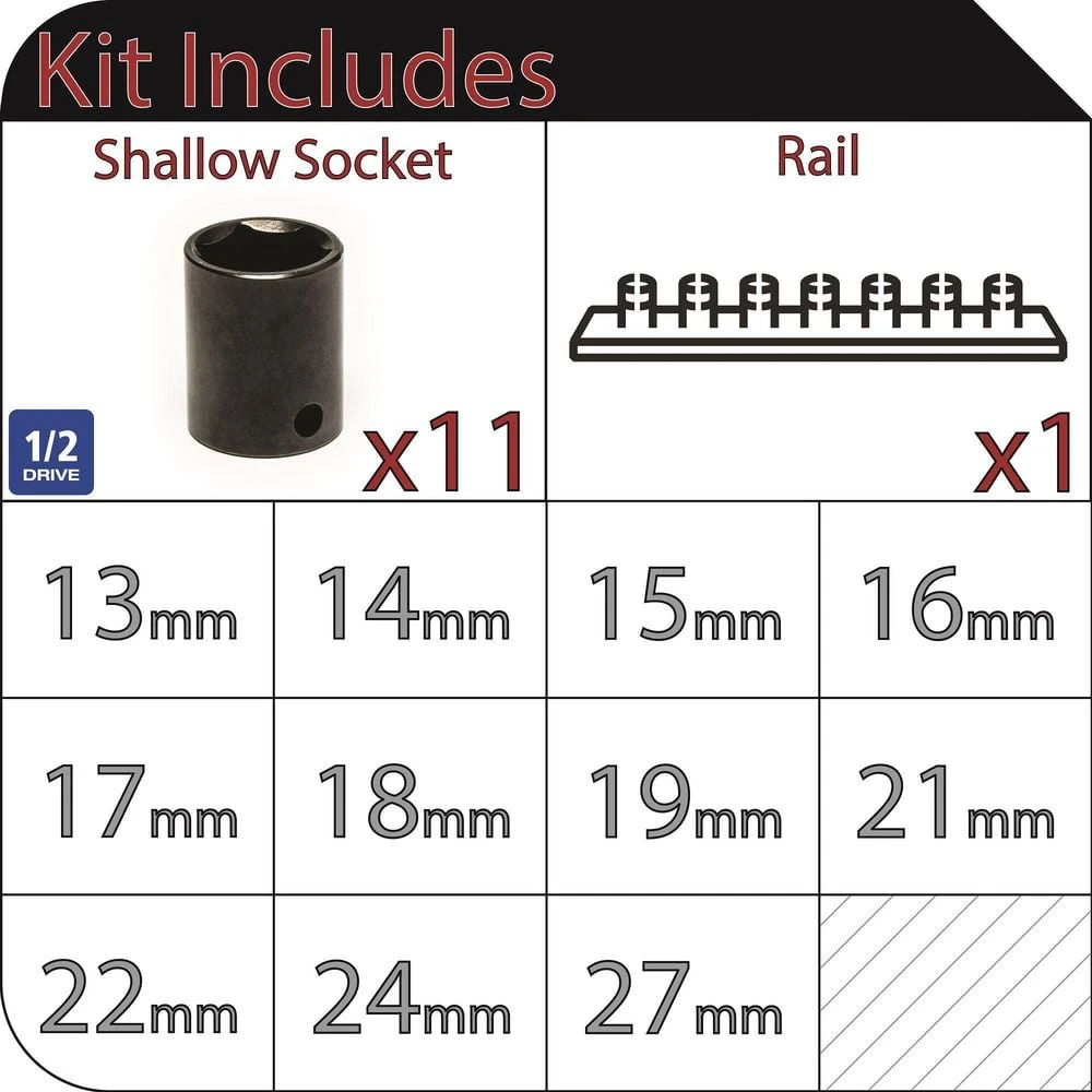 - 11-piece set includes 1/2