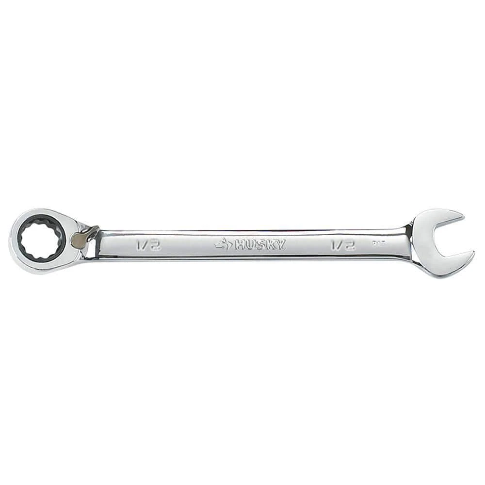 Husky’s reversible ratcheting combination wrenches feature a 72-tooth ratcheting box end that needs only 5° to engage fasteners and a reverse lever for making quick directional changes. Each wrench is manufactured from chrome alloy steel and heat treated for added strength and wear protection; providing durability for a lifetime of hard use. Their polished chrome finish resist rust and corrosion and easily wipes clean of oil and dirt. Both the open and box end features chamfered lead ins for quick and easy placement onto fasteners every time.