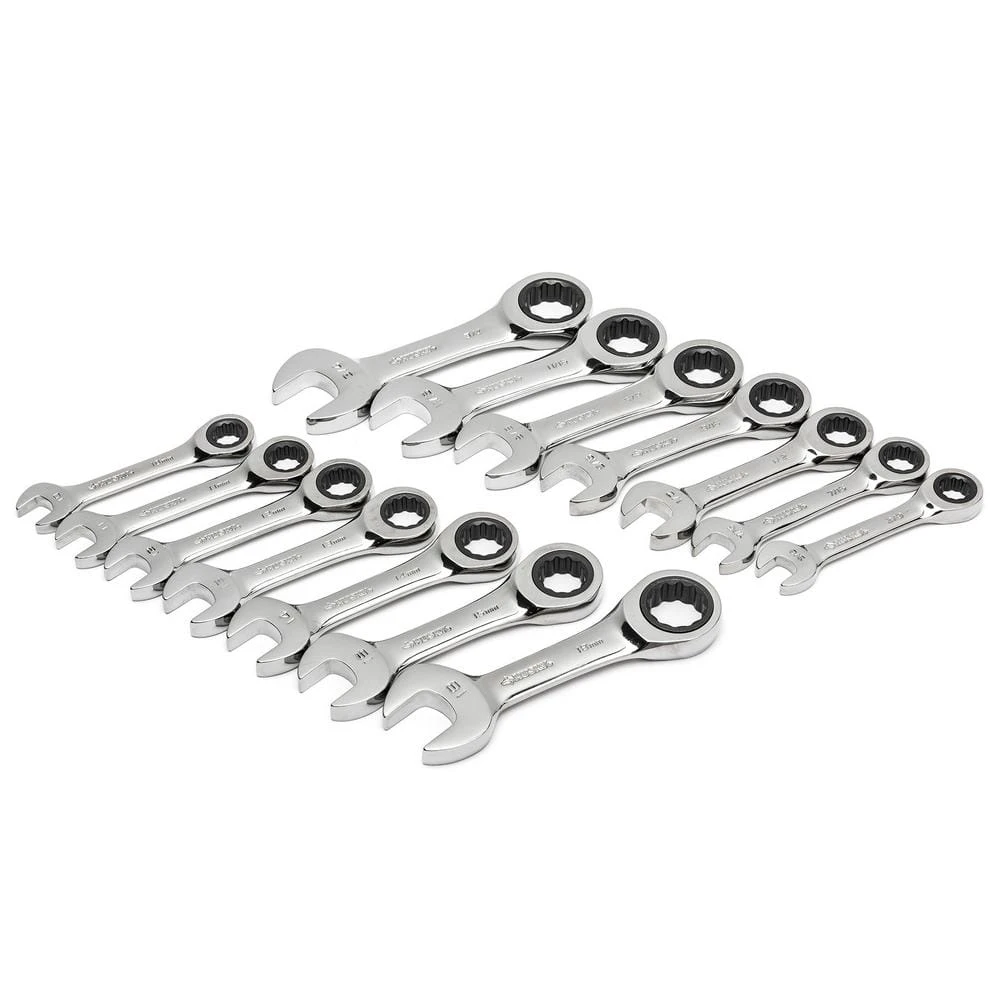 - Wrenches feature a 12-point box end design with 15° offset, which offers increased clearance