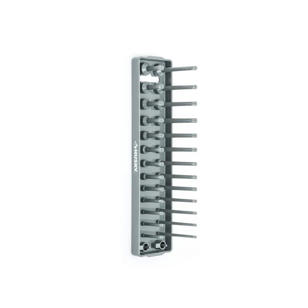 - Metric tray holds 28 sockets (14 deep and 14 shallow) covering sizes: 4 mm, 4.5 mm, 5 mm, 5.5 mm, 6 mm, 7 mm, 8 mm, 9 mm, 10 mm, 11 mm, 12 mm, 13 mm, 14 and 15 mm