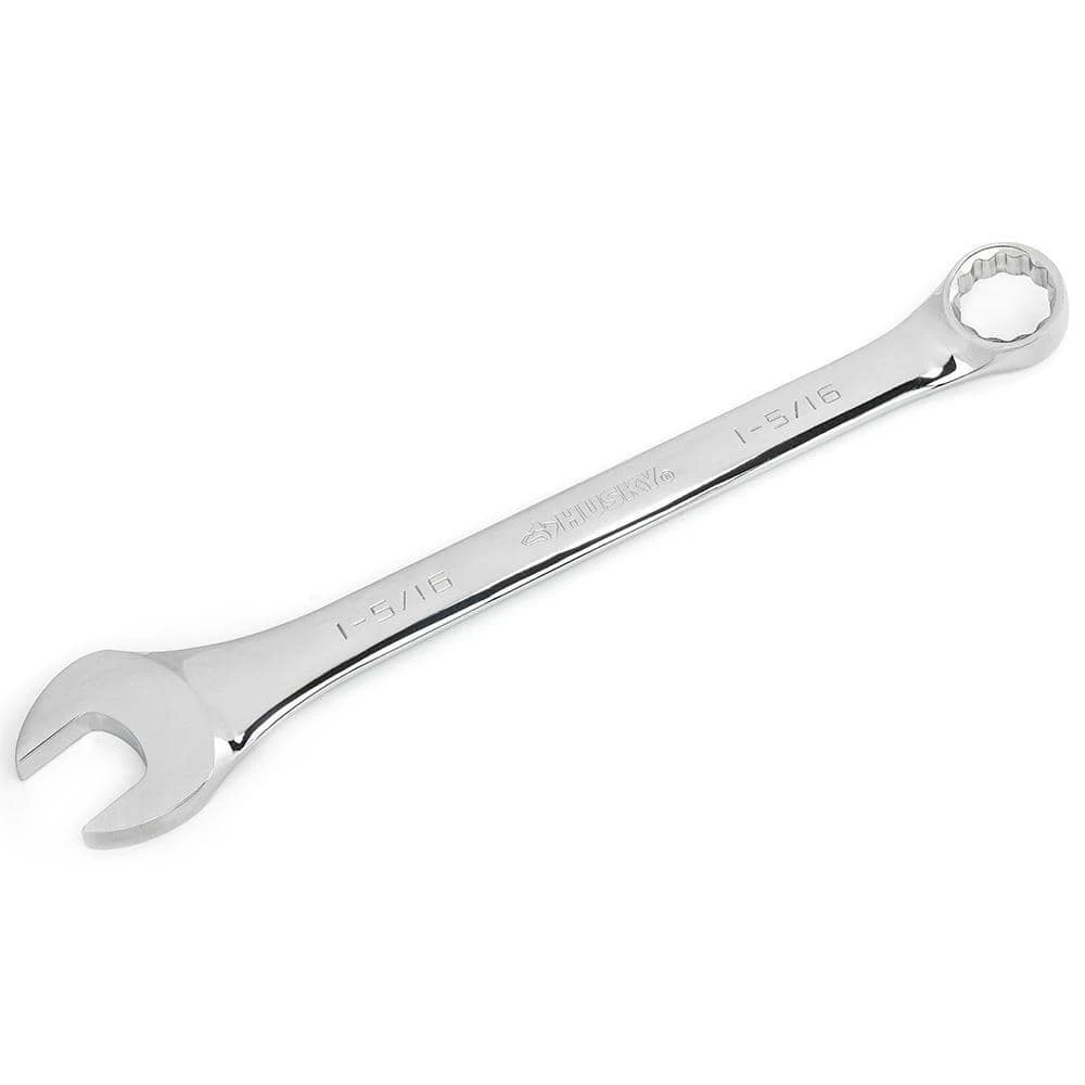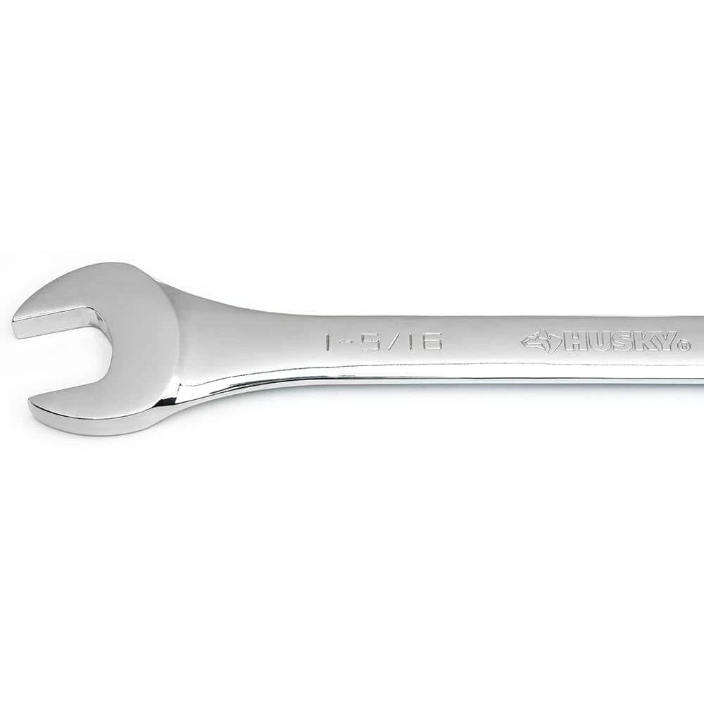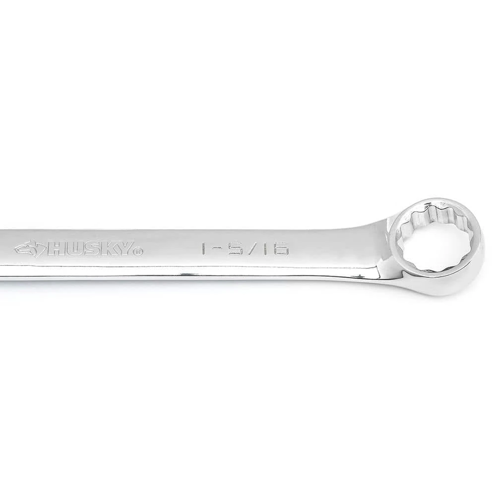 Husky combination wrenches are manufactured from chrome alloy steel and heat treated for added strength and wear protection, providing durability for a lifetime of hard use. Both the open and box end feature chamfered lead-ins for quick and easy placement onto fasteners every time. Their polished chrome finish resists rust and corrosion and easily wipes clean of oil and dirt.