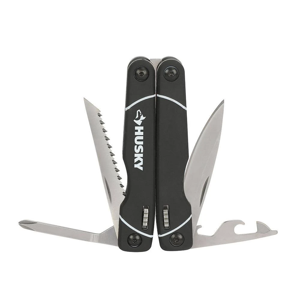 The Husky 10-in-1 painter’s tool combines a spreader and chisel scraper, crack opener, concave scraper, roller scraper, jab saw blade, knife blade, can opener, bottle opener, Philips screwdriver, slotted screwdriver. The 1.5 in. blade is made of carbon steel and is both rust resistant and solvent resistant. This painter’s tool has a convenient folding design for carrying and is a must to have in a painter’s tool box or bag.