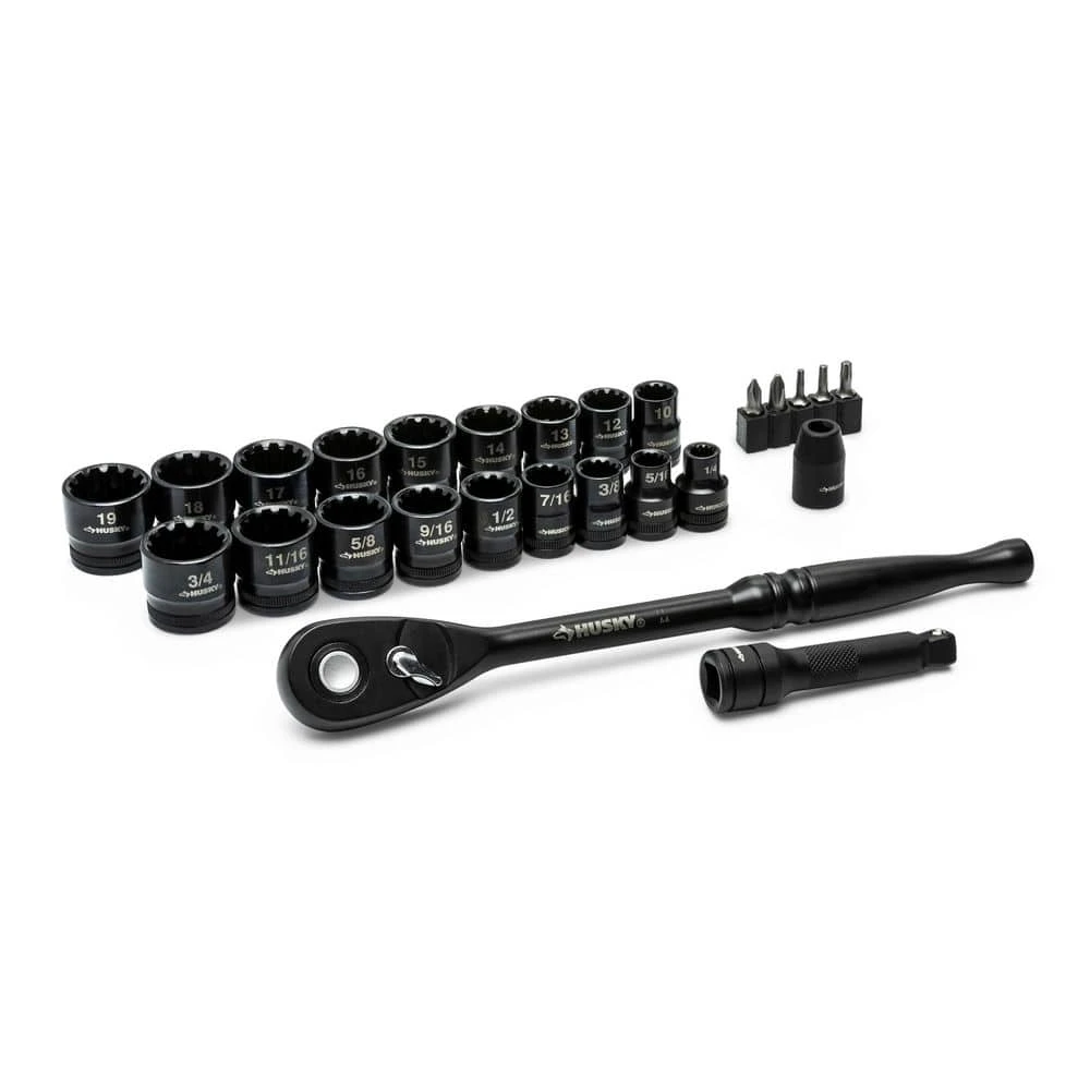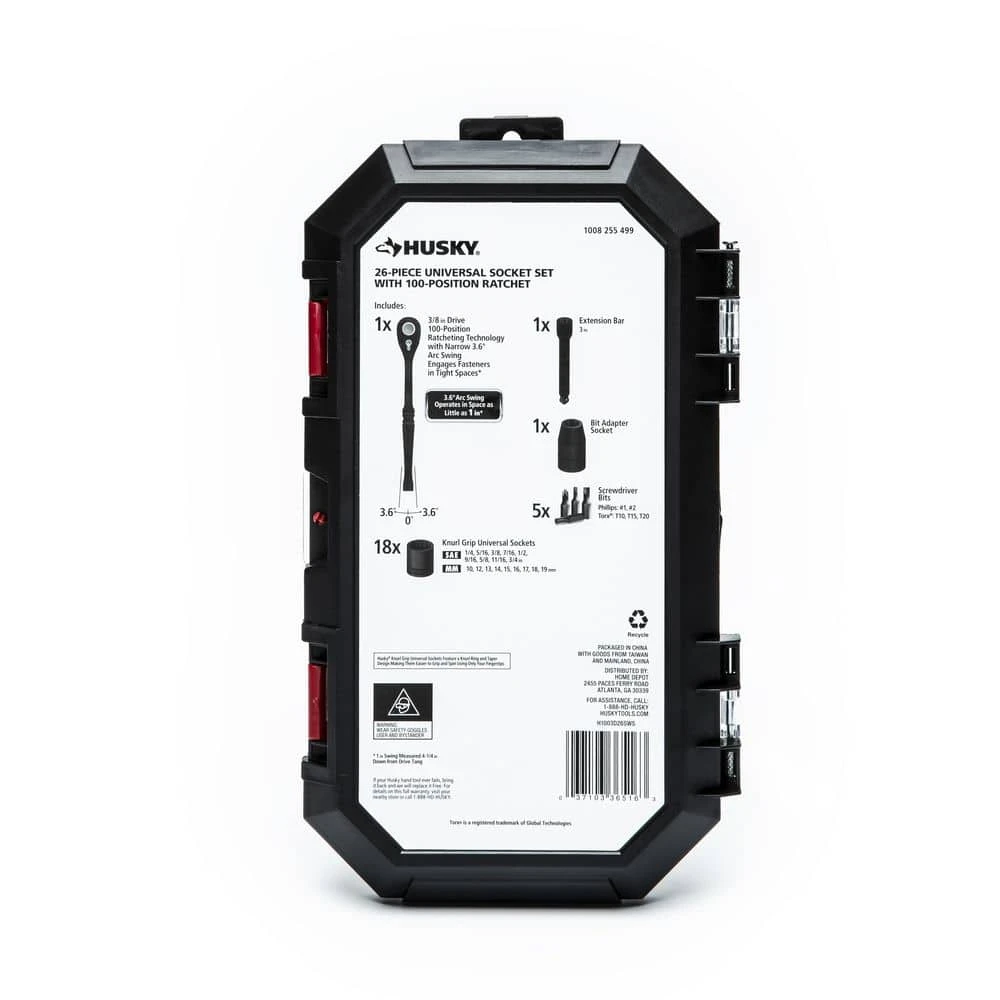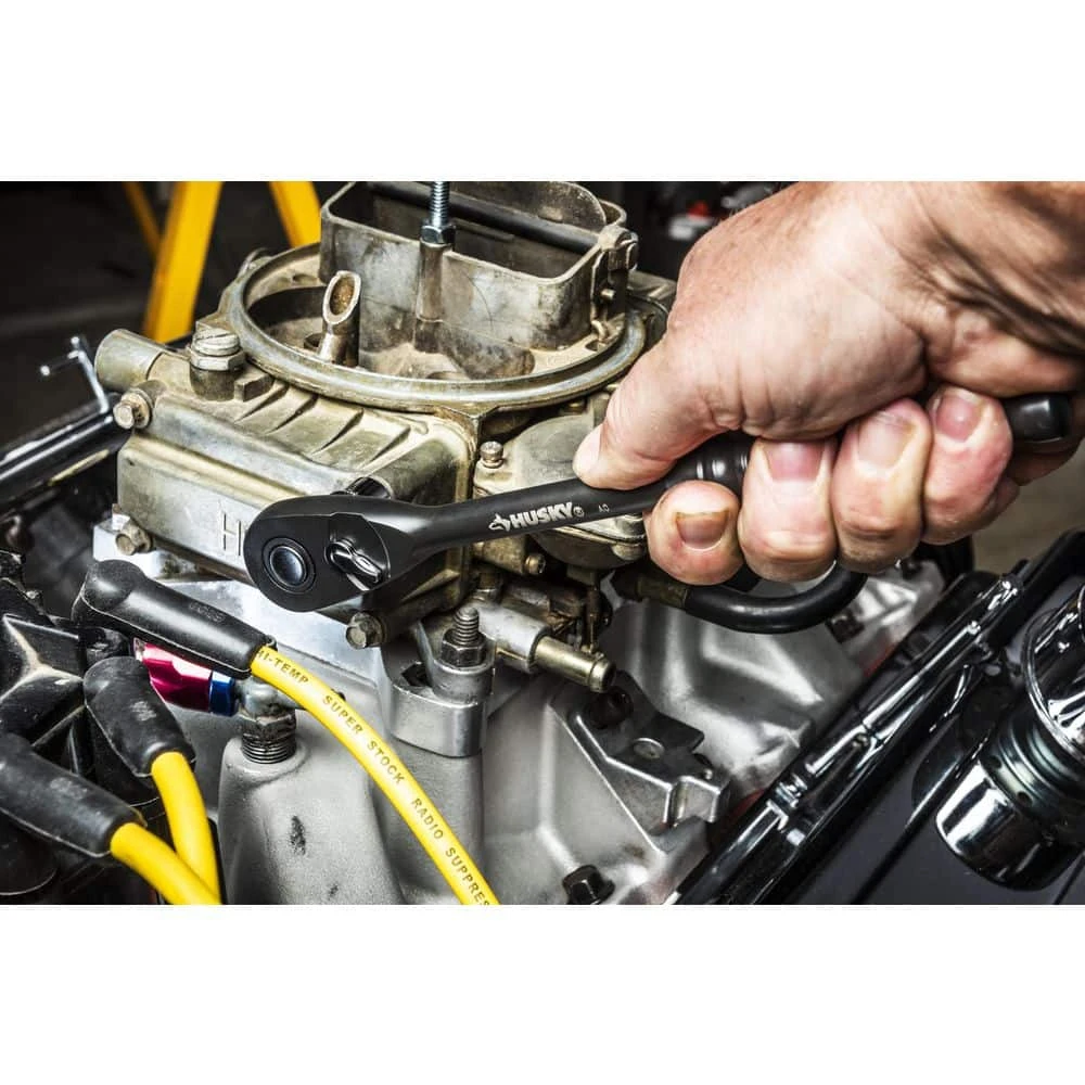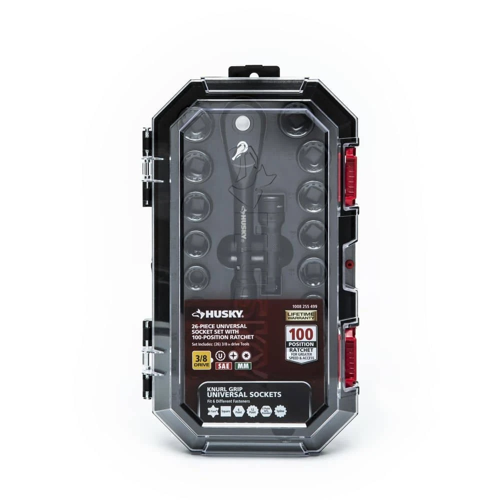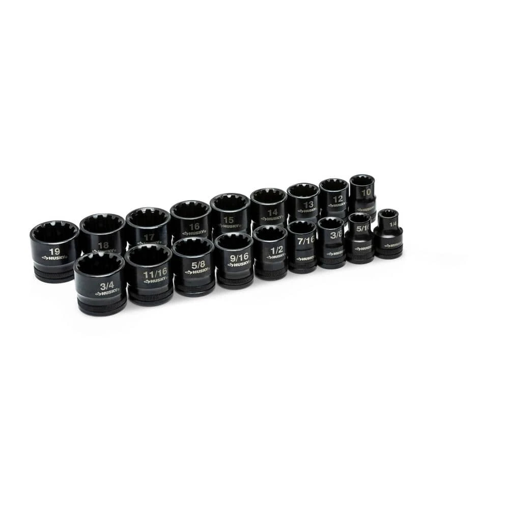 The dual-pawl technology of the 100-position ratchet in this 20-piece Husky 3/8