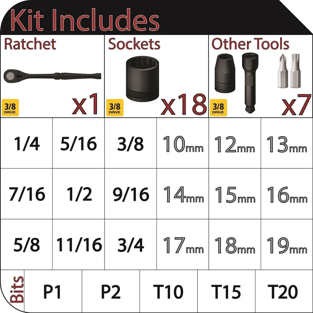 - Knurl grip universal sockets fit 6-point, 12-point, square, E-Torx, spine, and partially rounded hex fasteners