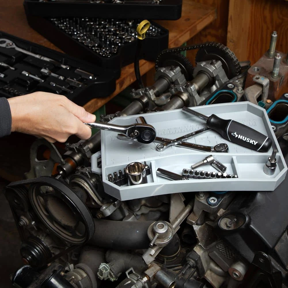 Stay organized with the Husky silicone tool mat. Non-slip and non-marking silicone provides a great base to place tools while working with no fear of damaging the work place. Soft design conforms to the surface underneath and can provide tool storage on uneven work places.