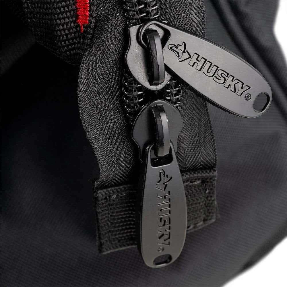 This bundle includes the Husky 12 in. and 15 in. Tool Bag. The Husky 15 in. Tool Bag is constructed of 600 Denier water-resistant material which will last you many years of use. It carries a 3-year limited warranty. This tool bag can hold up to 25 lbs. and is compatible with the Husky Padded Shoulder Strap. Items sold separately. This product carries a 3-year limited warranty. The Husky 12 in. Tool Bag is constructed of 600-denier water-resistant material. It features a dual-zipper main compartment for storage of different sized items. The Husky 12 in. Tool Bag also offers 2 internal and 2 external pockets for organization and is backed with a 3-year limited warranty. The Husky 12 in. red tool bag is great for DIY-ers, weekend warriors, handy-people or anyone needing to carry around basic hand tools, parts or accessories.