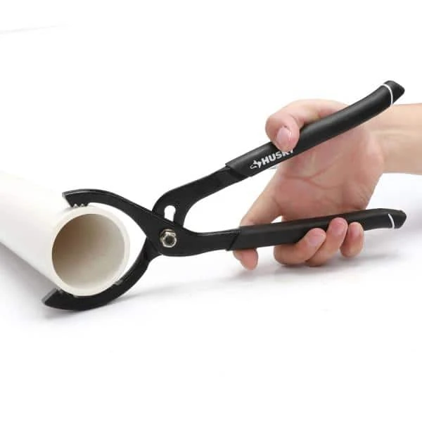 Husky’s 12 in. PVC Pliers work in tight spaces with optimal compression. They are ideal for unfastening or tightening large diameter PVC pipe, conduit and fittings. 3 sets of right-angle teeth provide a firm bite. The 12 in. handle supplies great leverage with dual material grip for added user comfort. The slip-joint adjustment stretches jaw capacity from 2-1/2 in. to 4-5/8 in. Built to last and backed by the Husky lifetime warranty.