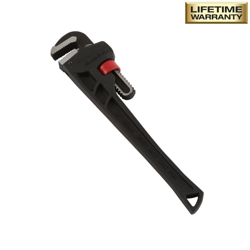 Husky’s 10 in. Heavy-Duty Straight Pipe Wrench is a must-have for your plumbing tool box. The high-quality, hot-forged steel jaws easily adjust and clamp to pipes up to 1 in. diameter. The Heavy-Duty Straight Wrench features adjustable jaws that perform great in a variety of plumbing repair jobs. It features a durable cast iron body and i-beam handle for superior durability. Working in tight spaces is easy with its trapezoid grip. Built to last and backed by the Husky lifetime warranty.