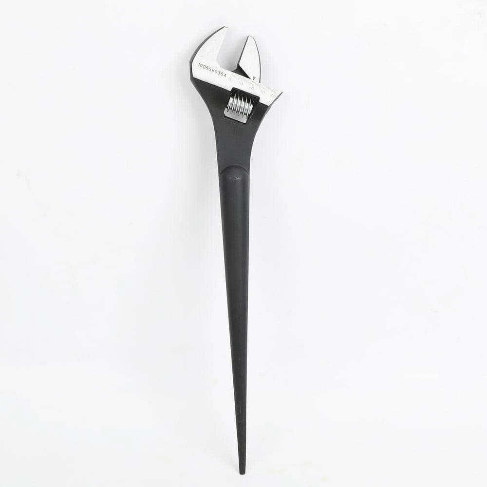 The 15-inch Adjustable Spud Wrench is an essential heavy-duty tool engineered for professional-grade applications in metalworking, steel erection, automotive repair, and industrial maintenance. Its robust construction begins with a high-carbon steel forging, heat-treated to provide exceptional strength and resist bending or warping under extreme torque. This core strength is protected by a uniform black oxide finish, which guards against corrosion and rust in harsh environments. The wrench is defined by its dual-function design. On one end, a precision-machined adjustable jaw delivers a secure grip on a wide range of nut sizes, featuring clearly marked graduations for accurate sizing. The opposite end features the signature spud-a long, tapered steel pin engineered for aligning holes in structural steel, machinery, and piping. This allows workers to effortlessly match bolt holes before inserting a fastener, streamlining assembly and saving significant time. The combination of a comfortable, well-balanced handle and this purposeful design make the wrench indispensable for tasks requiring precise alignment and powerful leverage.