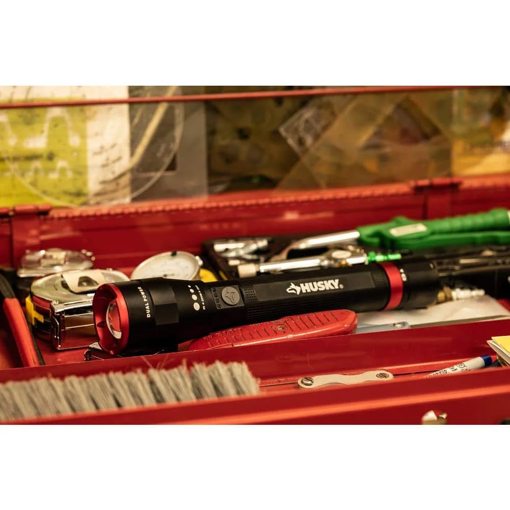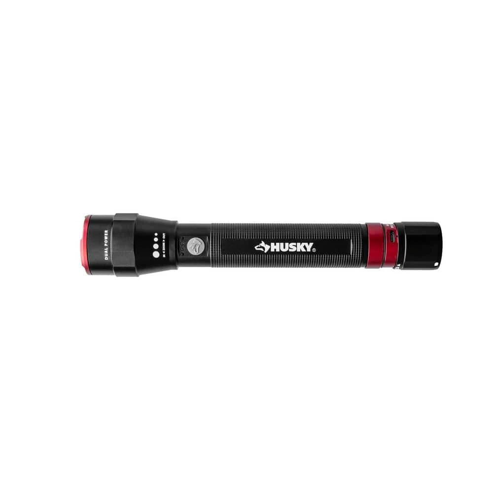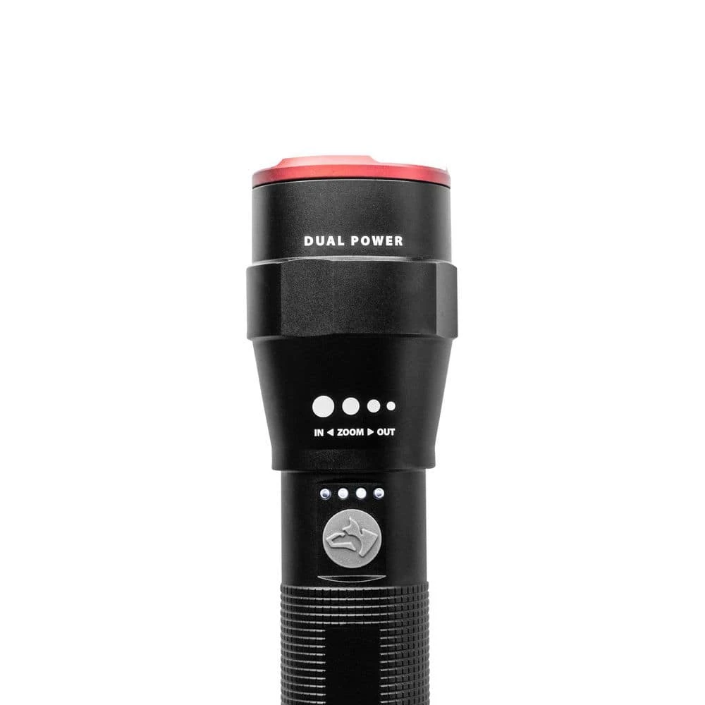 The 1500 Lumens Dual-Power LED Focusing Flashlight is the ultimate in convenience. It features a USB Port for both in and out charging, and includes a rechargeable battery. Its twist focus will change from spot to flood beam. The 3 lighting modes include strobe which is ideal for emergencies.