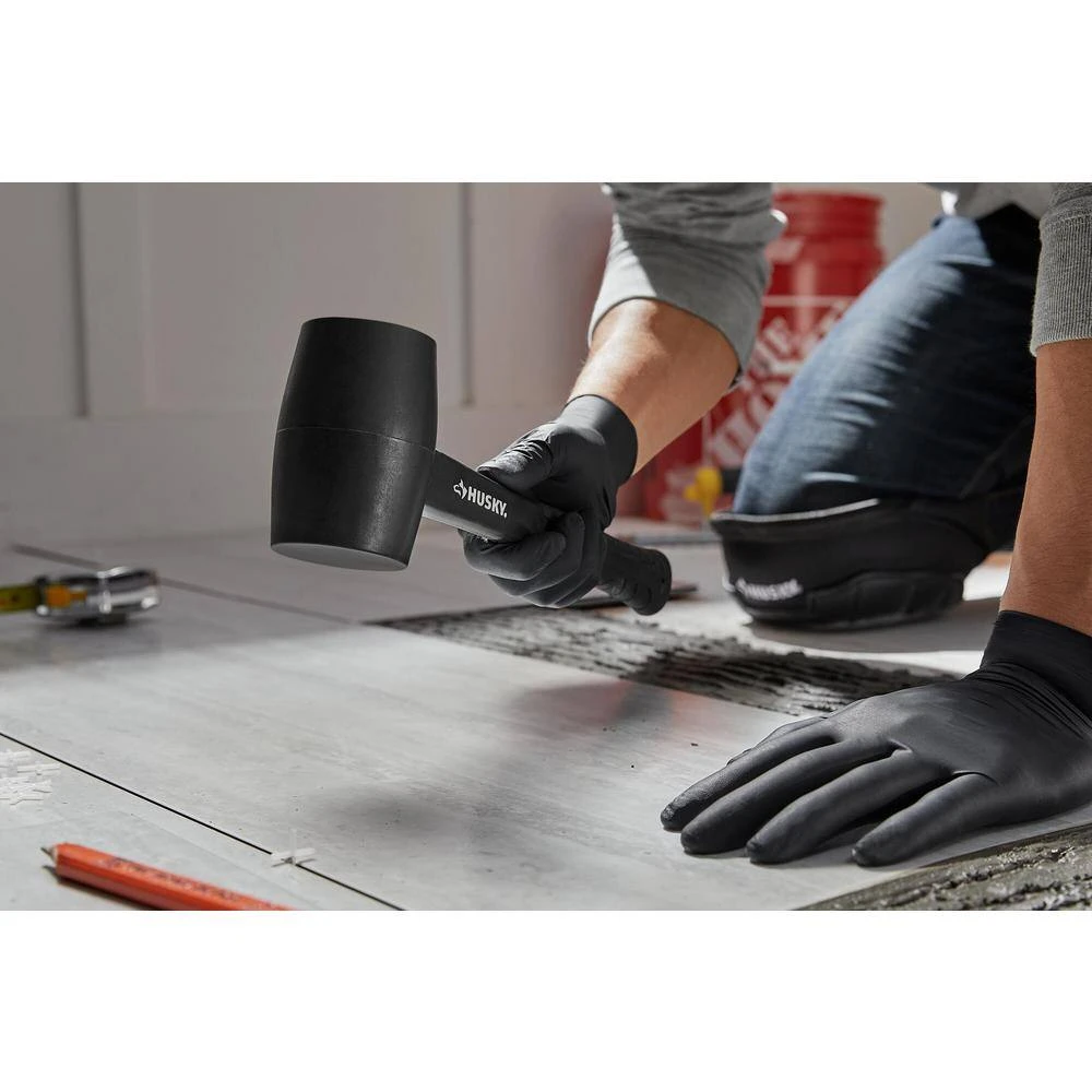 The solid rubber head of Husky 16 oz. Fiberglass Handle Rubber Mallet delivers a softened strike that won’t damage metal, wood and other hard surfaces, protecting parts. Whether it’s soft or hardwoods used in construction, cabinetry and furniture or the chrome, aluminum and magnesium parts on cars, trucks and motorcycles, you can safely apply persuasion without hurting sensitive finishes or surfaces. Made from high-strength, lightweight fiberglass, the virtually unbreakable handle core naturally dampens stinging vibrations. A poly jacket completely surrounds and protects the core, absorbing the impact of any missed strikes. The soft, nonslip rubber grip is the ultimate in comfort.