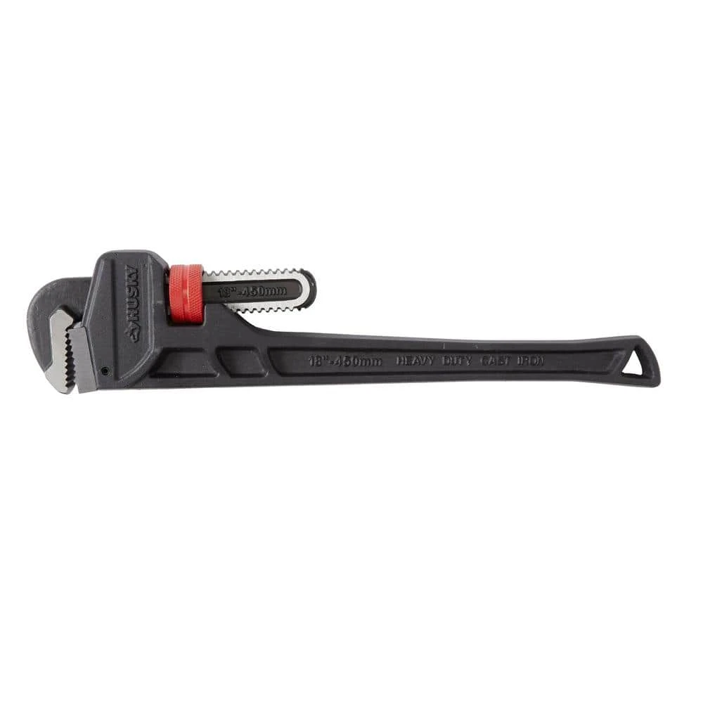 Husky’s 18 in. Heavy-Duty Straight Pipe Wrench is a must-have for your plumbing tool box. The high-quality, hot-forged steel jaws easily adjust and clamp to pipes up to 1 in. Dia. The Heavy-Duty Straight Wrench features adjustable jaws that perform great in a variety of plumbing repair jobs. It features a durable cast iron body and i-beam handle for superior durability. Working in tight spaces is easy with its trapezoid grip. Built to last and backed by the Husky lifetime warranty.