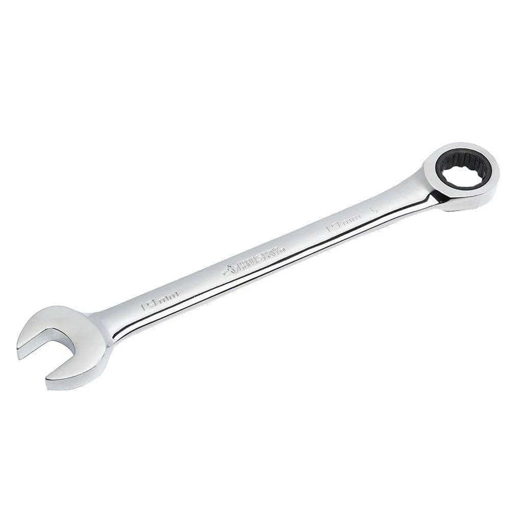 Husky’s ratcheting combination wrenches feature a 12-point, 72-tooth ratcheting box end that needs only 5° to engage fasteners. Each wrench is manufactured from chrome alloy steel and heat treated for added strength and wear protection; providing durability for a lifetime of hard use. Their polished chrome finish resist rust and corrosion and easily wipes clean of oil and dirt. Both the open and box end features chamfered lead ins for quick and easy placement onto fasteners every time.
