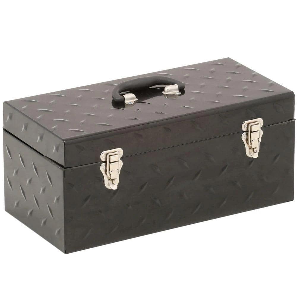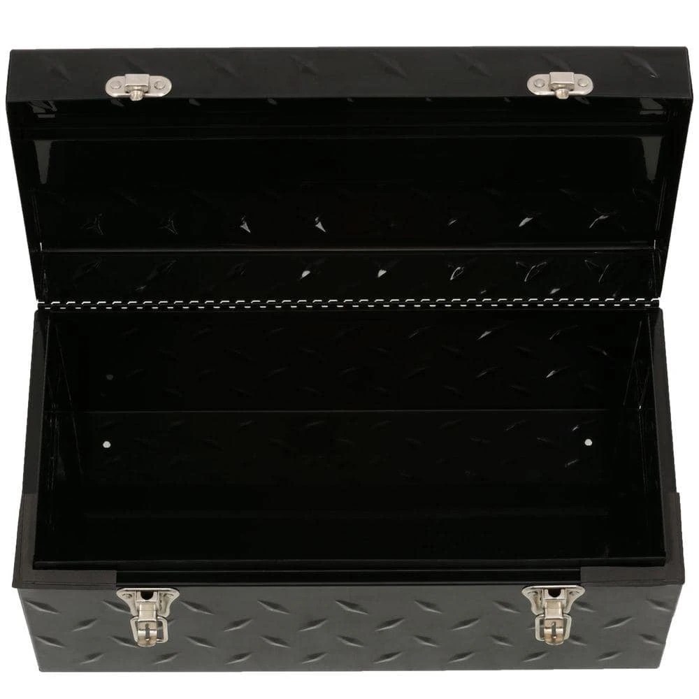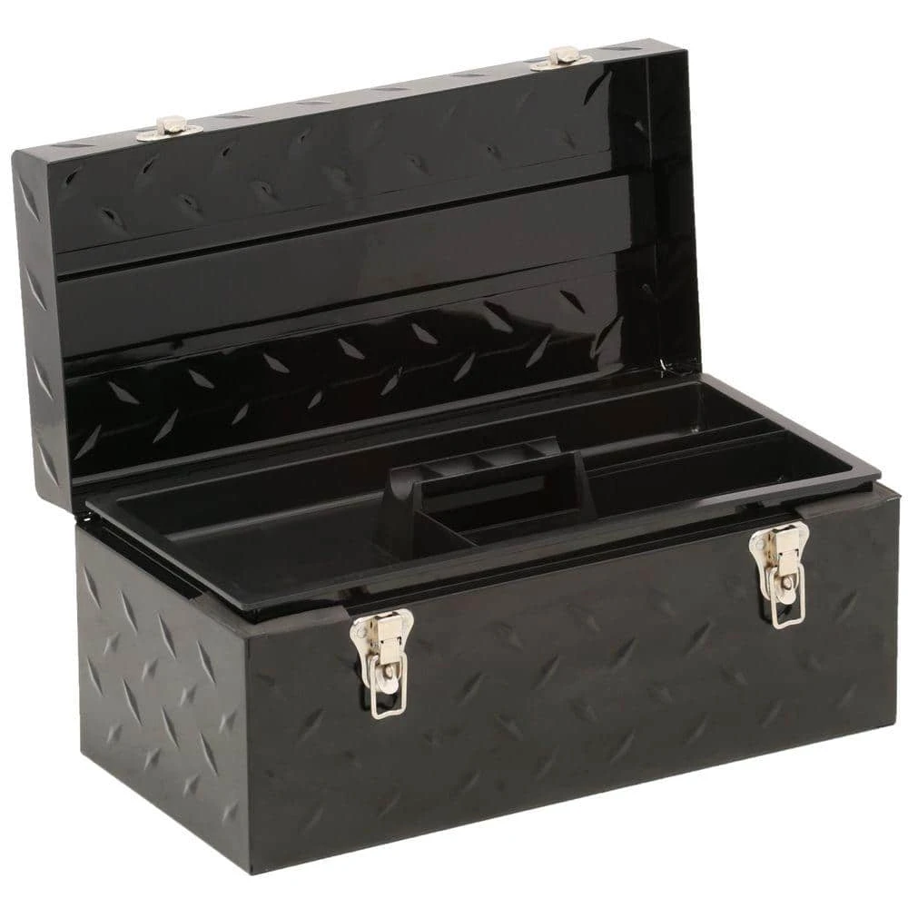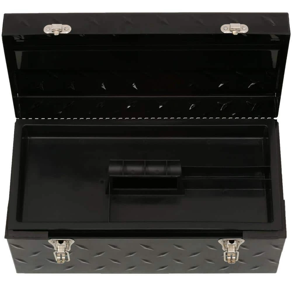 The Husky 20 in. Tread Plate Tool Box features welded seams for enhanced strength on the job. Able to hold up to 100 lbs. this solid metal tool box helps you store more tools at once and has metal latches for locking. Convenient portable tote tray included.