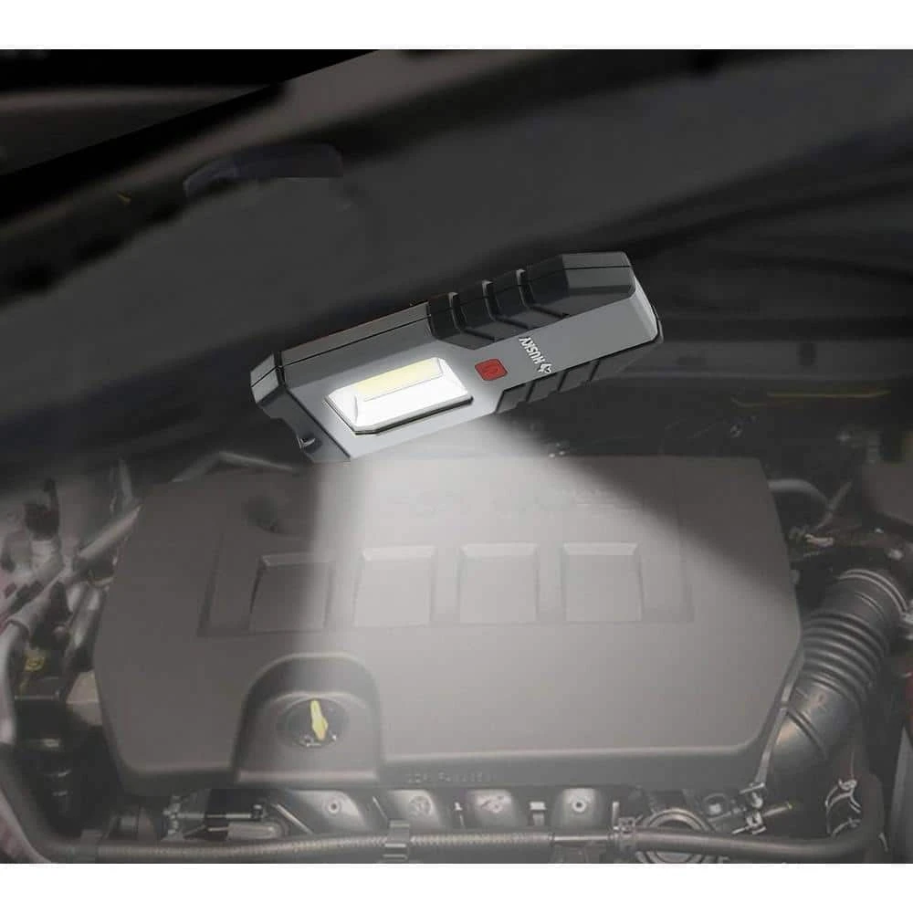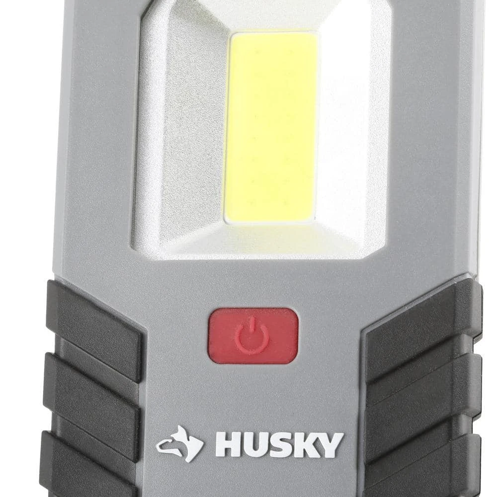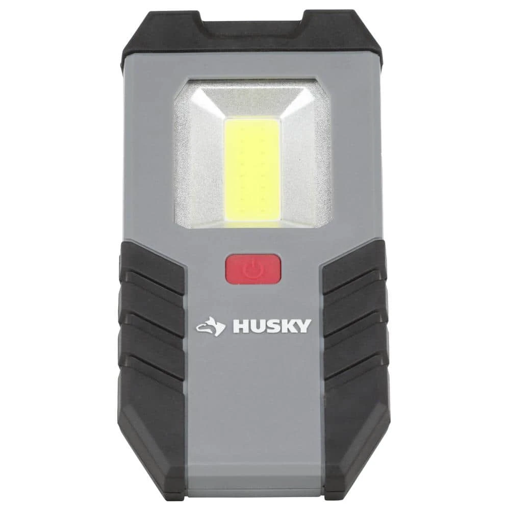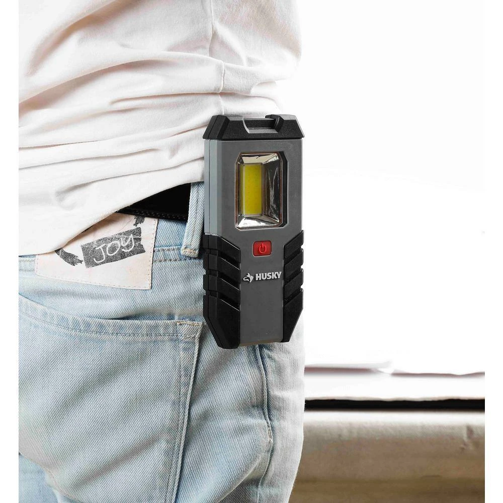 Use the Husky LED Multi-use work light in tight spaces where it can shine its super-bright LED at 200-Lumen for up to 3 hours. The hook and magnet at the bottom make it convenient to hang either way. The light has a 12 m throw and the outside is made of a durable rubber over mold with a 10 ft. drop resistance. It has 2 modes of operation, high light and low light too.