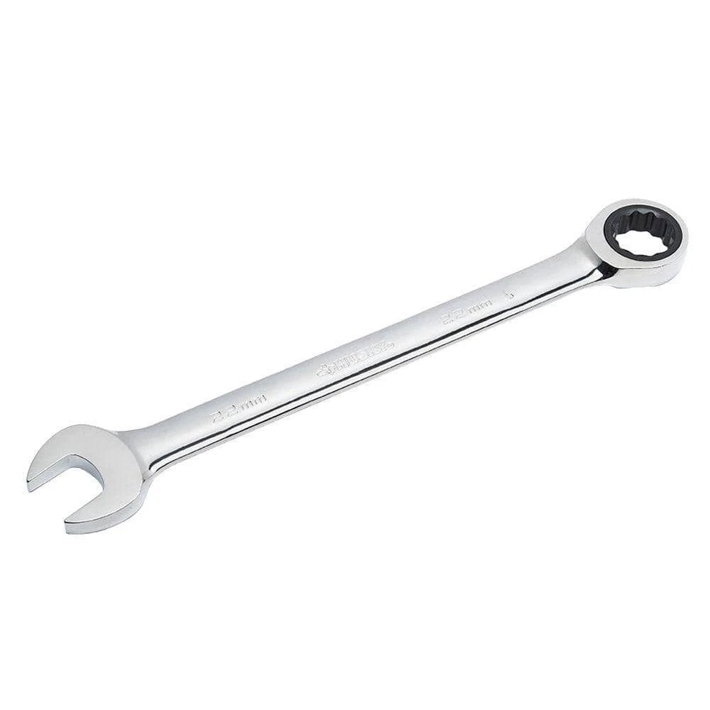 Husky’s ratcheting combination wrenches feature a 12-point ratcheting box end. Each wrench is manufactured from chrome alloy steel and heat treated for added strength and wear protection; providing durability for a lifetime of hard use. A 0° offset head provides maximum clearance for easier access in hard to reach places. Their polished chrome finish resist rust and corrosion and easily wipes clean of oil and dirt. These ratcheting wrenches have large, hard-stamped size markings for easy size identification in your tool box. Both the open and box end on these ratcheting wrenches features chamfered lead ins for quick and easy placement onto fasteners every time. With Husky ratcheting combination wrenches, you can spend less time fighting your tools and more time getting the job done.