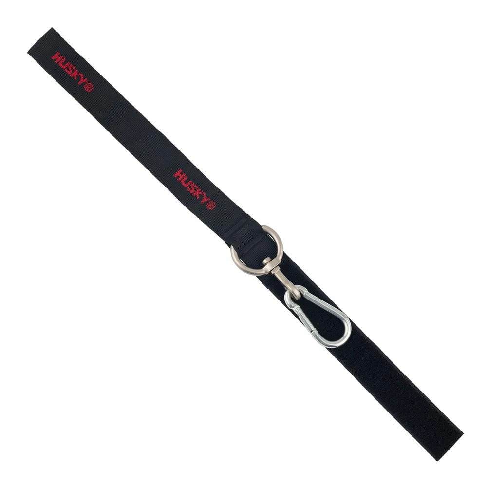 The Husky 24 in. Carabiner is made of zinc-plated steel and heavy-duty nylon webbing. This Carabiner features a quick-release hook and heavy-duty strap which makes it ideal for hanging rope, chain, tubing and much more. The Husky 24 in. Carabiner holds up to 100 lbs. Caution: Read Before Use. Product is Not to Be Used for Overhead Applications or to Secure Body Weight. Do Not Exceed the Maximum Weight Load. This product carries a 3-year limited warranty.