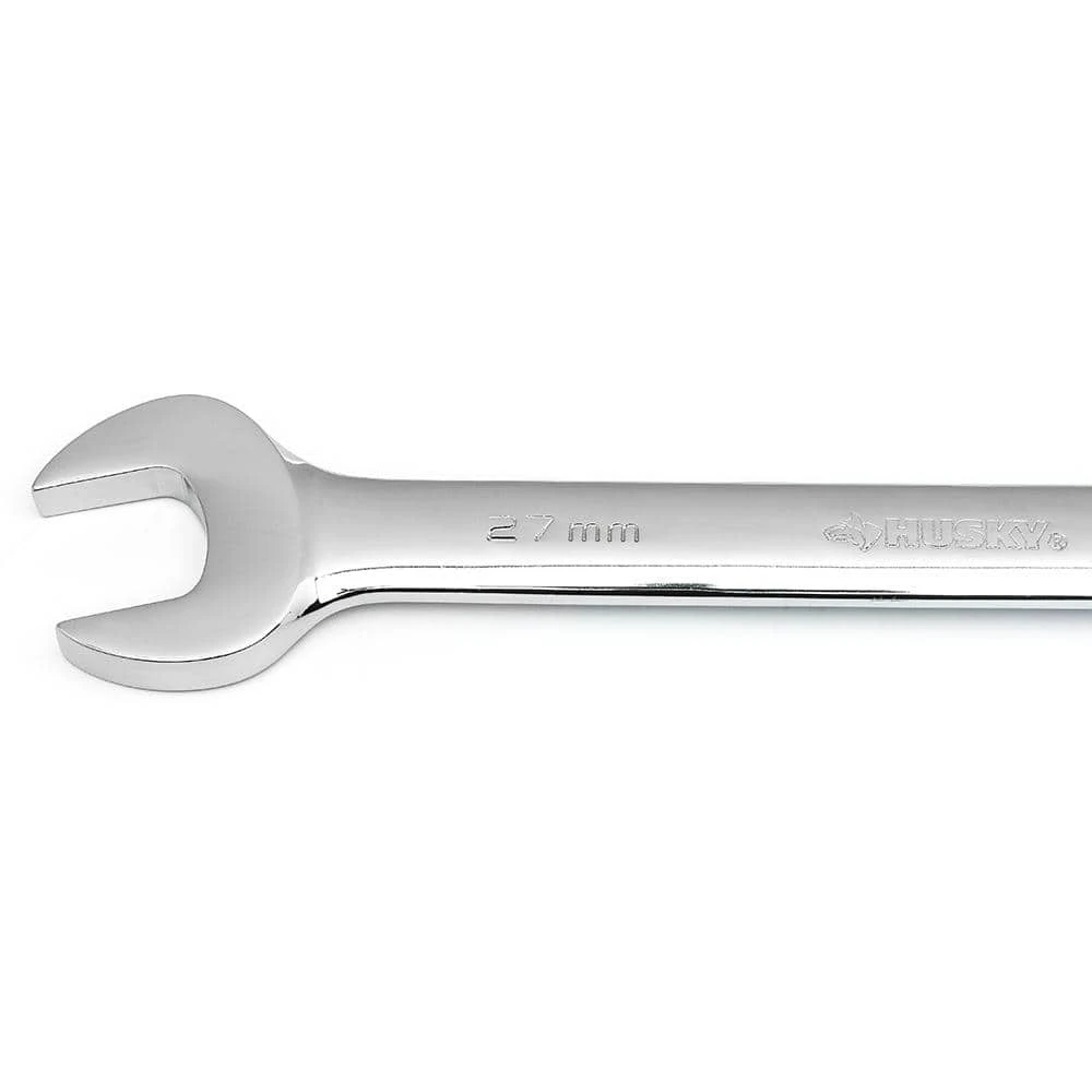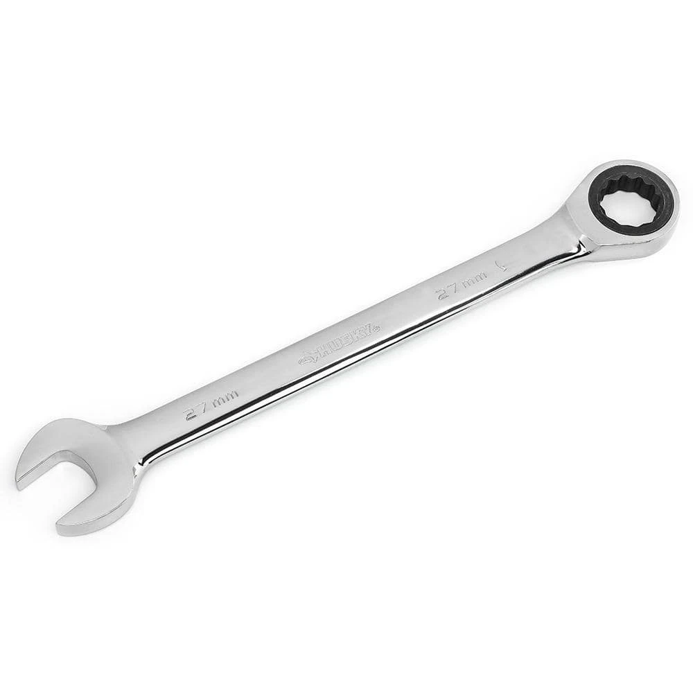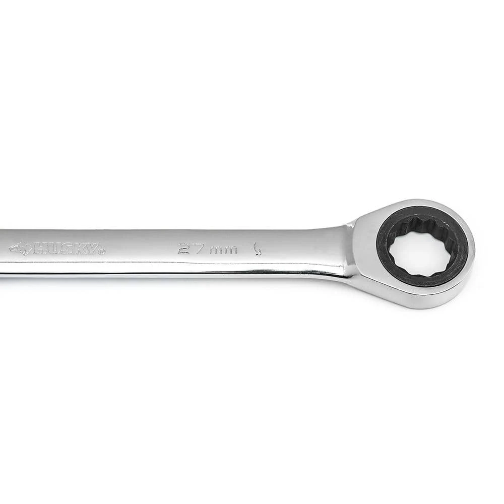 Husky’s ratcheting combination wrenches feature a 12-point, 72-tooth ratcheting box end that needs only 5° to engage fasteners. Each wrench is manufactured from chrome alloy steel and heat treated for added strength and wear protection; providing durability for a lifetime of hard use. Their polished chrome finish resists rust and corrosion and easily wipes clean of oil and dirt. Both the open and box end features chamfered lead-ins for quick and easy placement onto fasteners every time.