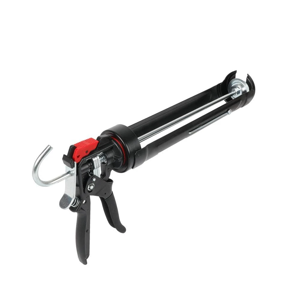 The Husky heavy-duty high-leverage caulk gun is designed to hold standard size 29 oz. tubes. It has a switch between drip and drip free for desired application and features an adjustable thrust ratio of 9:1 and 18:1 to make applying any caulk, construction adhesive, or sealant effortless. The rotatable barrel makes for easy application around corners and edges while the padded cushion-grip trigger provides added comfort. The rounded skeleton frame helps ensure quick cartridge loading and removal. A convenient seal punch tool located near the trigger is used to break the inner seal of your tube. This caulk gun is perfect any job and is backed by Husky’s lifetime warranty.