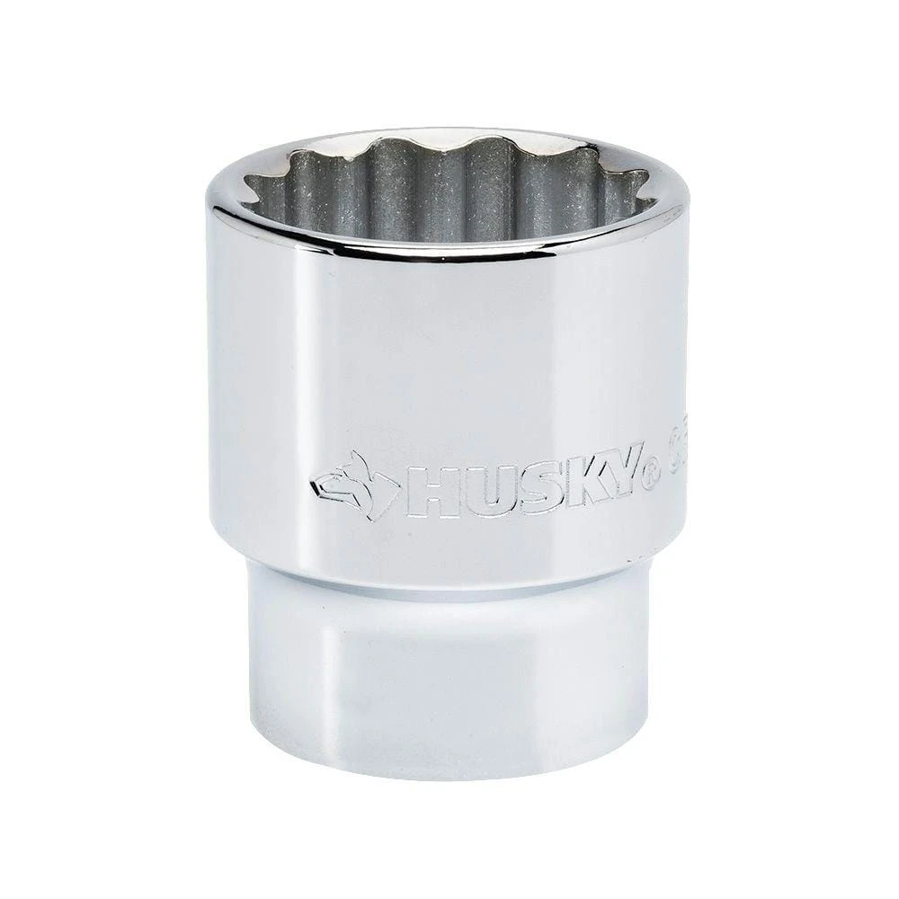 Husky 3/4 in. drive sockets are manufactured from chrome-vanadium steel and heat treated for added strength and wear protection, providing durability for a lifetime of hard use. Each socket features chamfered lead-ins for quick and easy placement onto fasteners every time. Their polished chrome finish resists rust and corrosion and easily wipes clean of oil and dirt.