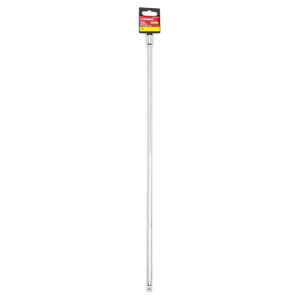 The Husky 3/8 in. drive 20 in. extension provides added length to your sockets for hard-to-reach fasteners. The tool is made of alloy steel for added durability and a long life. The polished chrome finish provides a professional look and helps to resist corrosion.