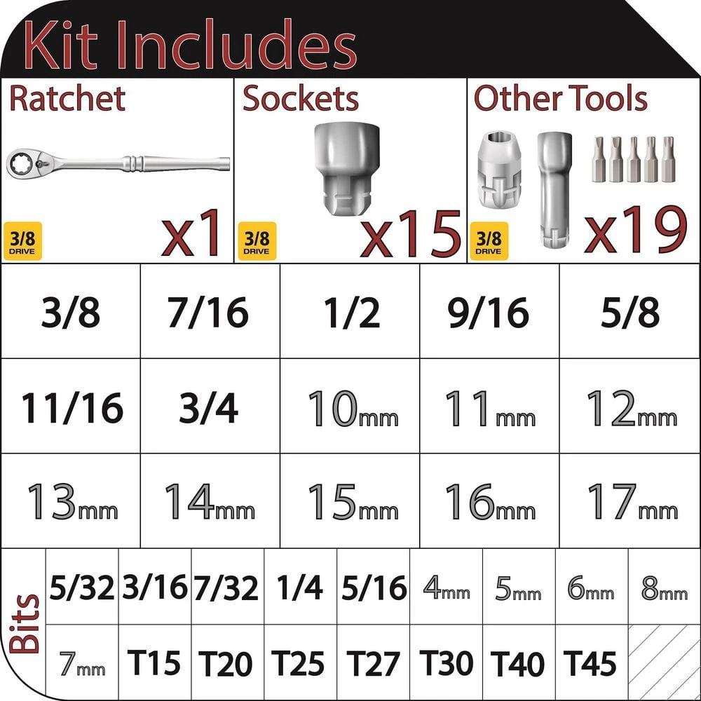 - Bits work with bit adapter socket to create 17 different bit sockets