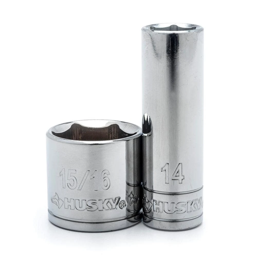 Upgrade your hand tools with these Husky 3/8 in. Drive 6-Point Socket and Bit Sockets. This set includes a selection of sockets in SAE and metric sizes, in both standard and deep lengths. Made from alloy steel, the sockets and bits are durable and have long-lasting performance.