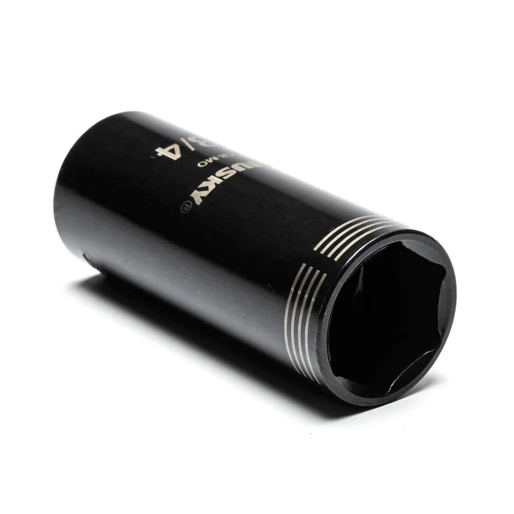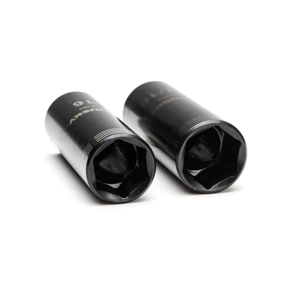 - Set includes: 9 thin wall SAE deep sockets: 5/16 in., 11/32 in., 3/8 in., 7/16 in., 1/2 in., 9/16 in., 5/8 in., 11/16 in., 3/4 in., metric deep sockets: 8 mm, 9 mm, 10 mm, 12 mm, 13 mm, 15 mm, 16 mm, 17 mm, 18 mm and (2) 1/4 in. hex x 3/8 in. drive adapter