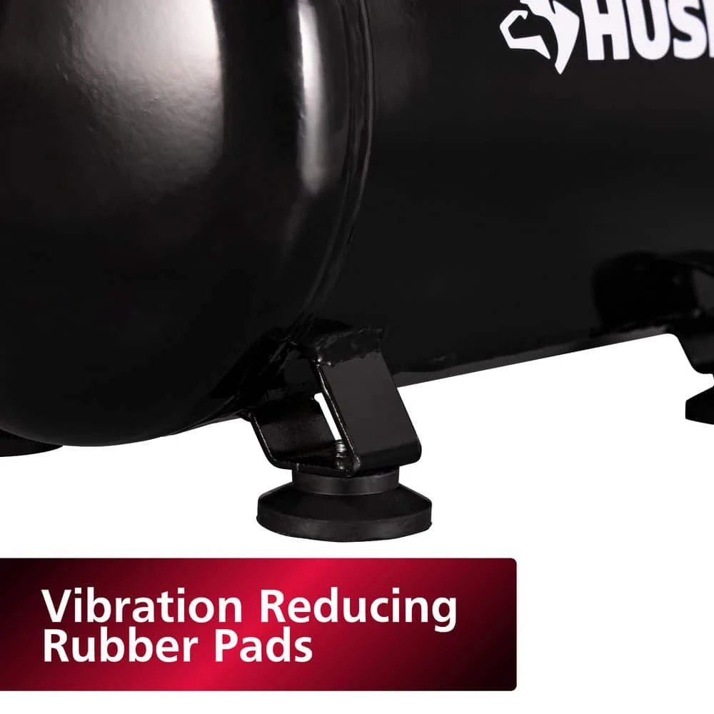 The Husky 3 Gal. 120 PSI Portable Electric Oil-Free Light Duty Hotdog Air Compressor with Fold Down Handle and 1-Quick Coupler delivers dependable performance for light-duty tasks. Powered by a 1/3 horsepower universal motor, this corded electric unit operates at 83 dBA, focusing on functionality, while its oil-free pump eliminates messy maintenance. With a maximum pressure of 120 PSI and air delivery of 0.65 SCFM at 90 PSI or 1 SCFM at 40 PSI, it efficiently handles inflation for car tires, bike tires, and small sports equipment, as well as brad nailing, hobby painting, sanding, and other basic projects. The 3-gallon hotdog-style tank, paired with a fold-down handle, ensures easy portability and storage, weighing just 17.86 pounds for convenient transport to job sites or home use. Equipped with a 1-quick coupler for fast, secure hose connections, this compressor enhances workflow efficiency, supported by reliable performance for everyday light-duty needs. Operating on 120V power and ETL Listed for safety, it includes a pressure regulator for precise air control across various tools. Its lightweight, rugged design suits household and small jobsite applications, from inflation to minor repairs. Backed by a 2-year limited warranty, this Husky compressor offers peace of mind for DIYers and professionals, providing efficient operation for a range of modest tasks. Perfect for those needing a compact, low-maintenance compressor.