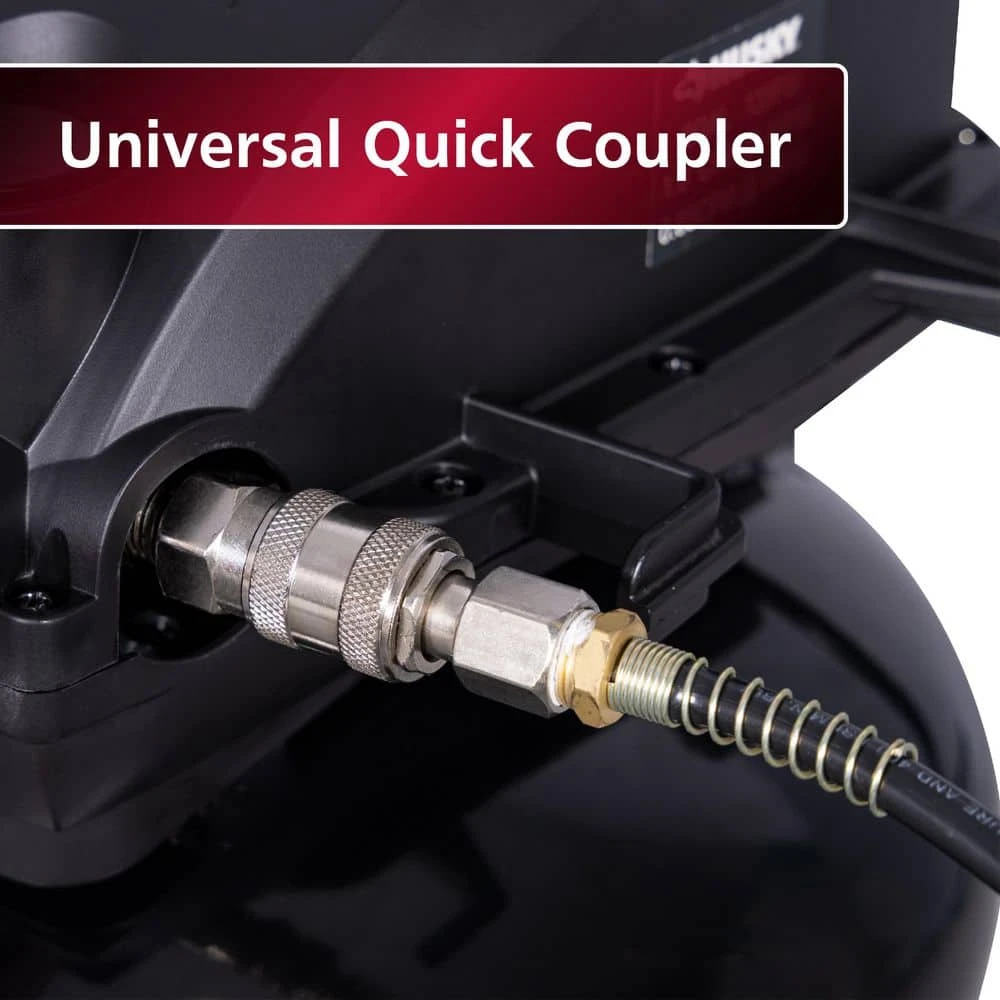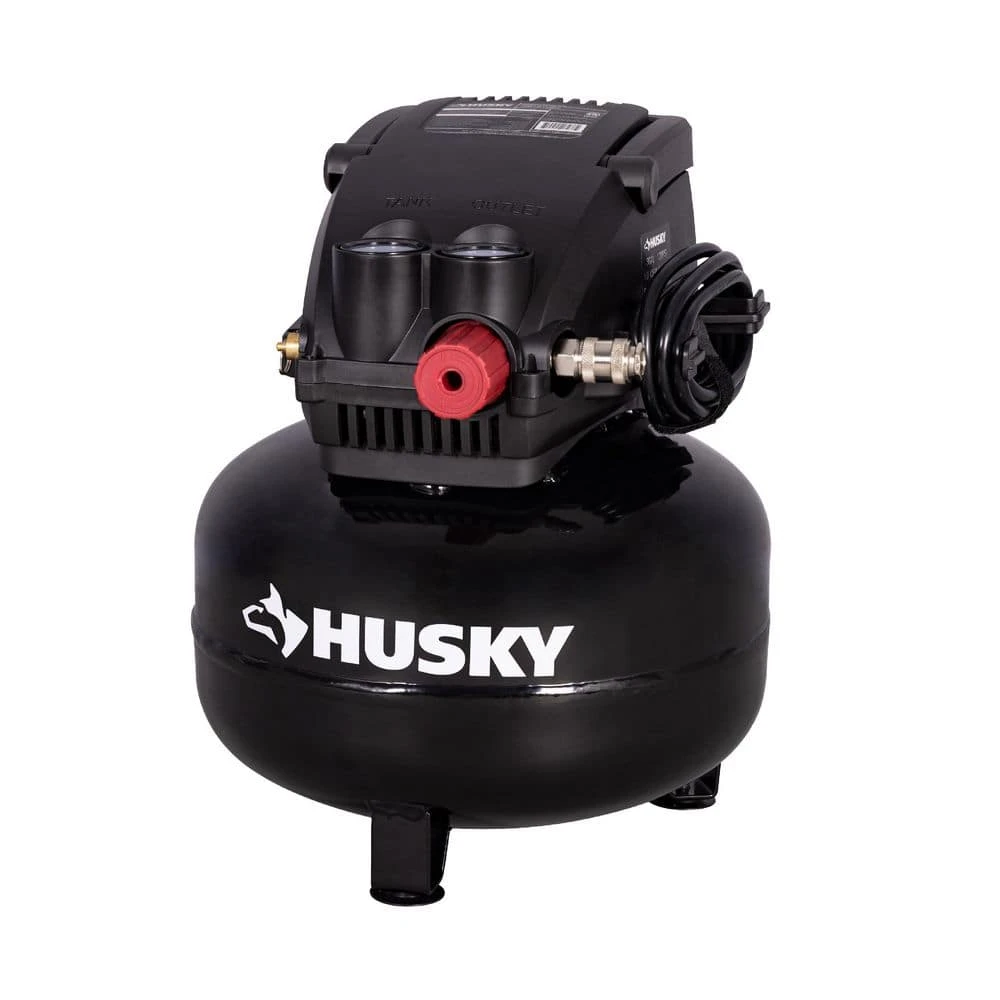 The Husky 3 Gal. 120 PSI Portable Electric Oil-Free Light Duty Pancake Air Compressor with Fold Down Handle and 1-Quick Coupler offers a dependable solution for inflation needs. Fast Inflation highlights its ability to quickly inflate tires, sports balls, and air mattresses, powered by a 1/3 HP motor that delivers 120 PSI and a steady airflow of 0.65 SCFM at 90 PSI and 1.0 SCFM at 40 PSI, ensuring efficient performance across diverse tasks. Easy to Use features a 1-quick coupler for hassle-free connections, paired with a regulator for precise air control, making it simple to operate on 120V power with ETL Listed safety. Compact and Portable design includes a 3-gallon pancake tank and fold-down handle, weighing just 15.54 lbs, allowing effortless transport from garages to outdoor sites. Cord Wrap Design keeps the workspace tidy with built-in organization, while the oil-free design reduces maintenance demands for a cleaner operation. Reliable Performance ensures durability with a rugged build, supported by a 2-year limited warranty from The Home Depot and Husky, offering peace of mind for all inflation projects.