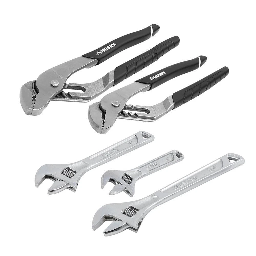 - Includes: one 6 in. adjustable wrench, one 8 in. adjustable wrench, one 10 in. adjustable wrench, one 10 in. and one 12 in. groove joint pliers