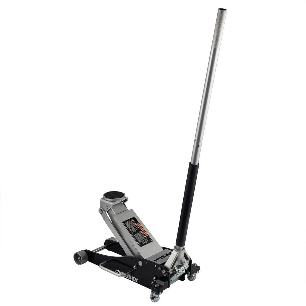 Introducing the Husky 3-Ton Aluminum and Steel Jack, the ideal racing-style jack for those seeking a lightweight automotive accessory. This car jack features a versatile lifting range from 4 inches to 18-1/2 inches, making it suitable for a variety of vehicles. Equipped with handles on the side, this jack can be easily maneuvered and swiftly removed from under your vehicle after use. The auto jack also includes a padded saddle to protect your vehicle from damage during lifting. When considering your next car jack lift, choose Husky for quality and reliability.