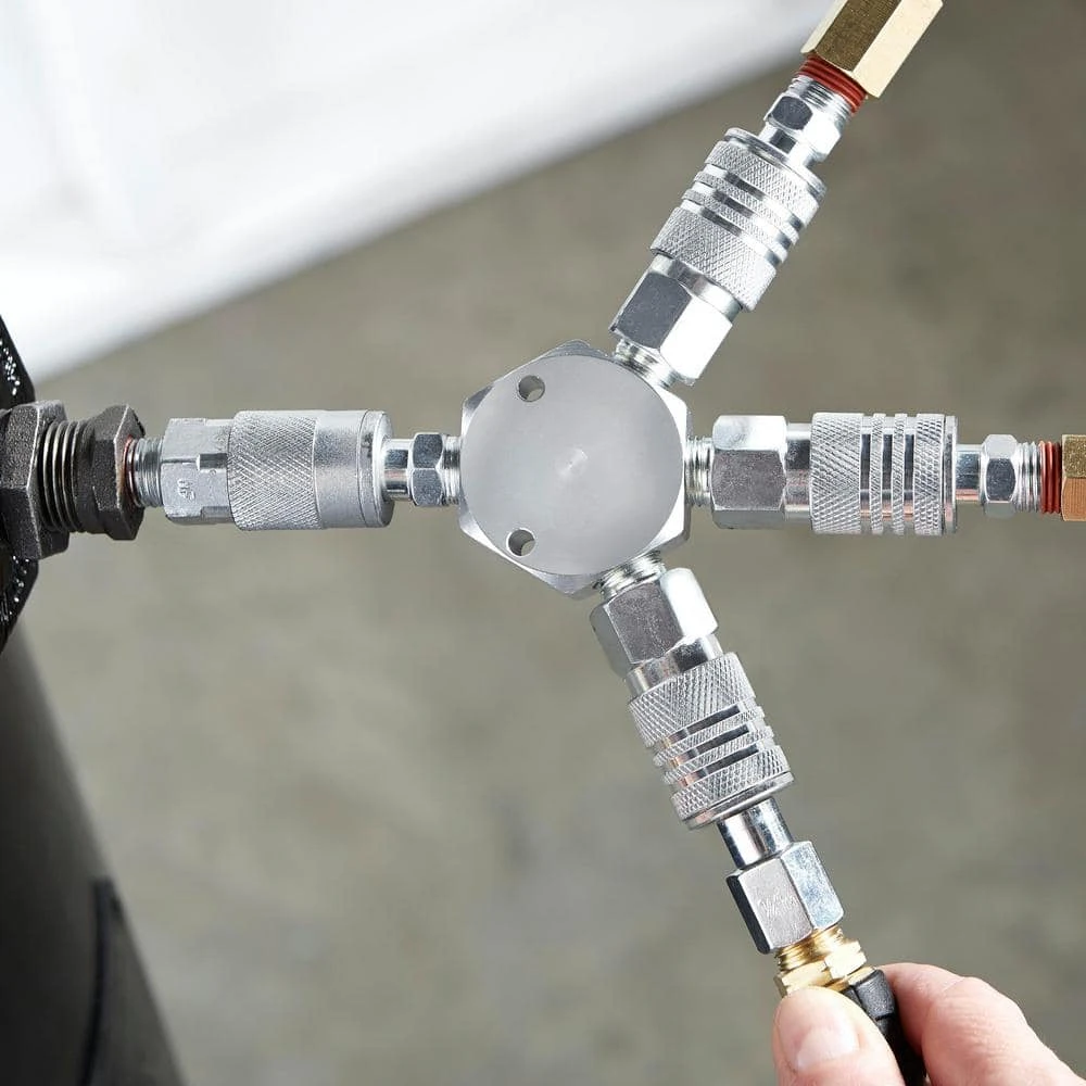 - 3-way manifold effectively turns a single airline from an air compressor into 3 separate airlines to tackle projects more efficiently