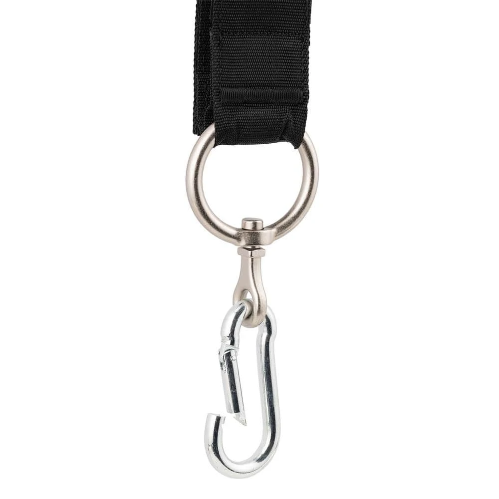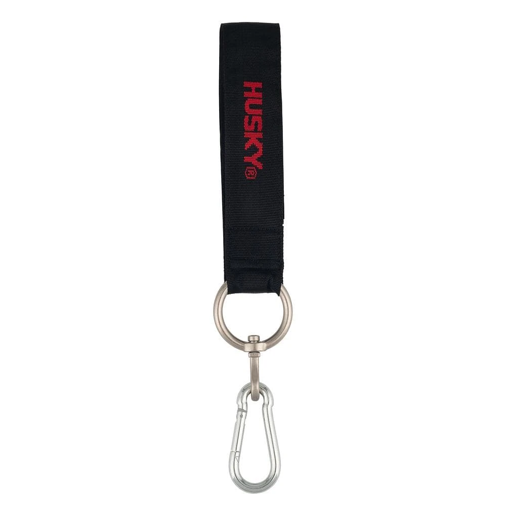 The Husky 36 in. carabiner is constructed with zinc-plated steel and black heavy-duty nylon webbing. This Carabiner hanging strap features a quick release hook and heavy-duty strap which makes it ideal for hanging rope, chain, tubing, and much more. Use this quick release tool storage hanging strap in your garage, workshop, or anywhere extra secure tool storage is needed. The Husky 36 in. Carabiner with quick release holds up to 100 lbs. Caution: Read Before Use. Product is Not to Be Used for Overhead Applications or to Secure Body Weight. Do Not Exceed the Maximum Weight Load. This product carries a 3-year limited warranty.