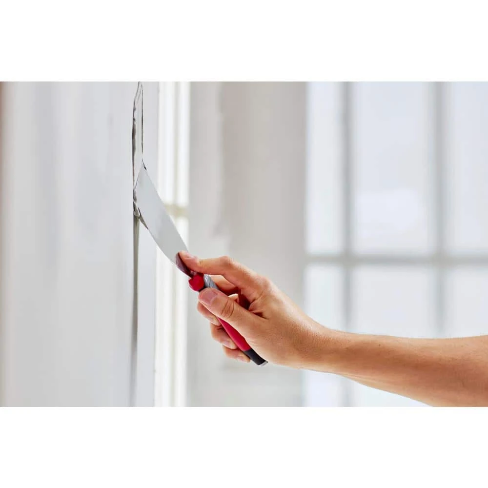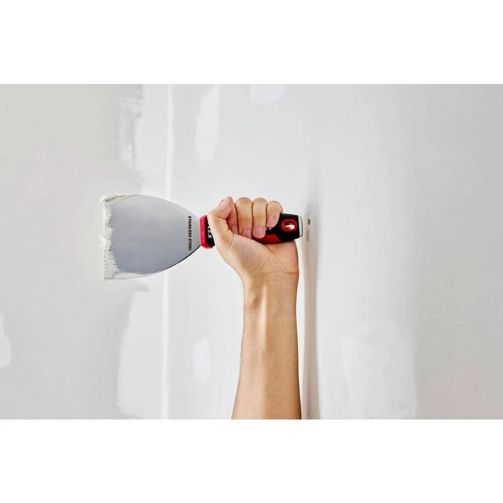The Husky 4 in. flexible joint knife features a hollow-ground stainless steel blade that offers the highest durability and quality finish. The flexible blade bends for easy application of drywall compound and spackle and is both rust resistant and solvent resistant. The soft-grip handle is ergonomically designed to provide comfort and a sturdy grip and includes a finishing hammer end to set drywall nails. Lastly, the easy peel label can be removed from the blade without leaving behind residue.