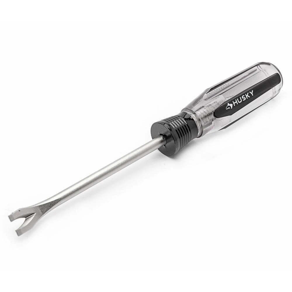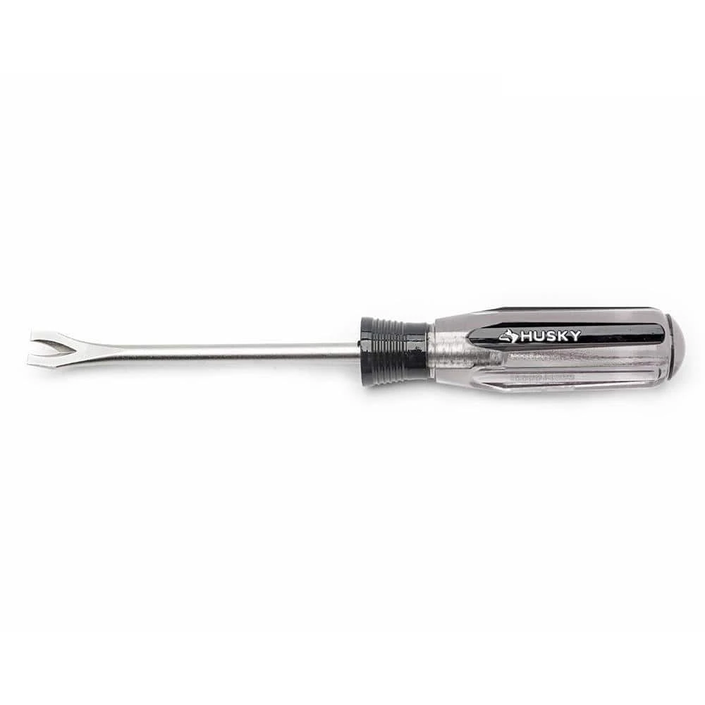 Use the Husky Tack Puller for removing tacks and small nails. Its alloy steel blade is heat-treated for strength and durability and will help you get the job done quickly and easily. Tough, durable butyrate handle withstands exposure to solvents and chemicals.