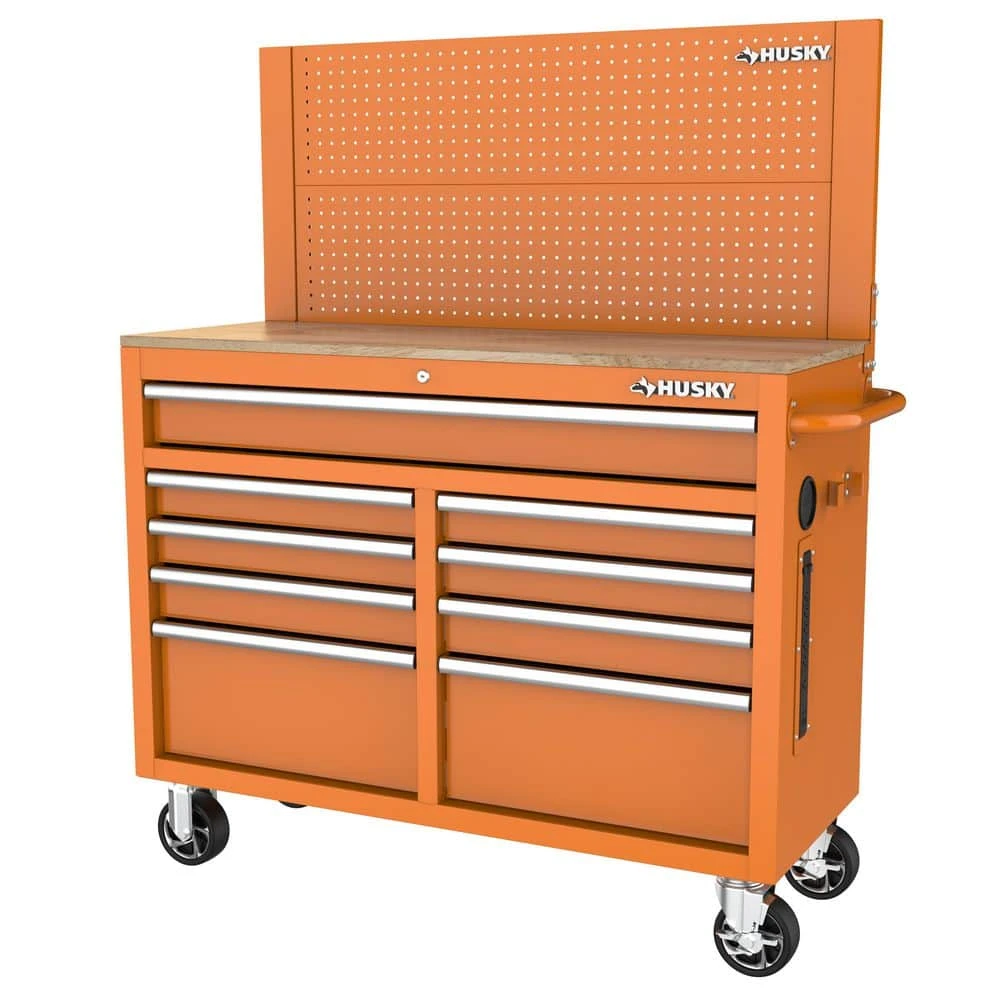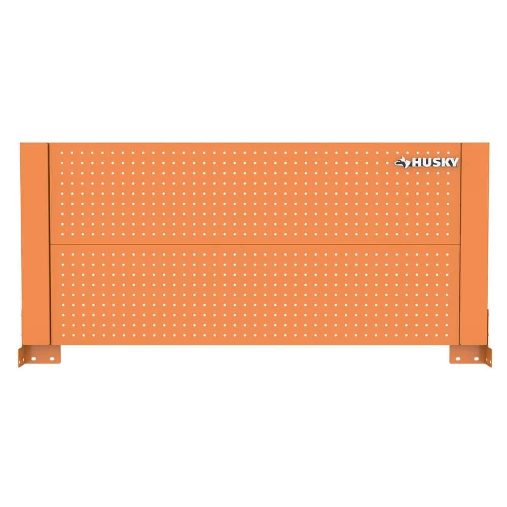 The Husky 46 in. Gloss Orange Steel Pegboard Attachment is designed to attach to Husky 46 in. Mobile Workbenches and provide additional storage and quick access to tools. It easily bolts onto the pre-threaded holes on the workbench to provide 810 sq. in. of pegboard space. It will accommodate most 1/8 in. and 1/4 in. peg hooks.
