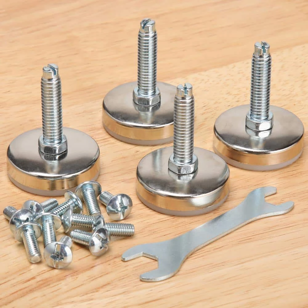 - Table height adjusts from a 26 in. to 39 in. H when using the included leveling feet
