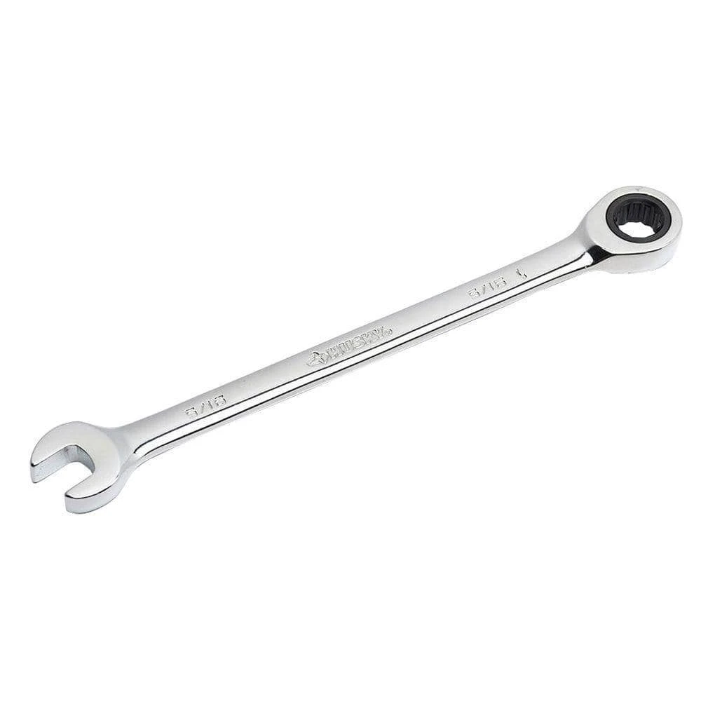 Husky’s ratcheting combination wrenches feature a 12-point ratcheting box end. Each wrench is manufactured from chrome alloy steel and heat treated for added strength and wear protection; providing durability for a lifetime of hard use. A 0° offset head provides maximum clearance for easier access in hard to reach places. Their polished chrome finish resist rust and corrosion and easily wipes clean of oil and dirt. These ratcheting wrenches have large, hard-stamped size markings for easy size identification in your tool box. Both the open and box end on these ratcheting wrenches features chamfered lead ins for quick and easy placement onto fasteners every time. With Husky ratcheting combination wrenches, you can spend less time fighting your tools and more time getting the job done.