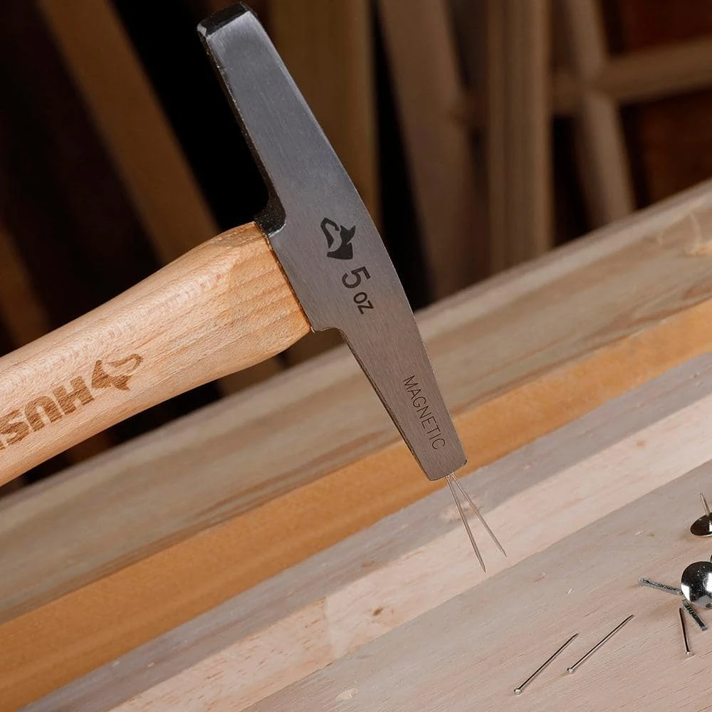 The Husky 5 oz. Magnetic Tack Hammer is designed for driving tacks into wood and other material. It features a polished, magnetic face for holding and setting tacks and a smooth face for striking tacks. The head is forged from high quality steel and the handle is high-quality hardwood.