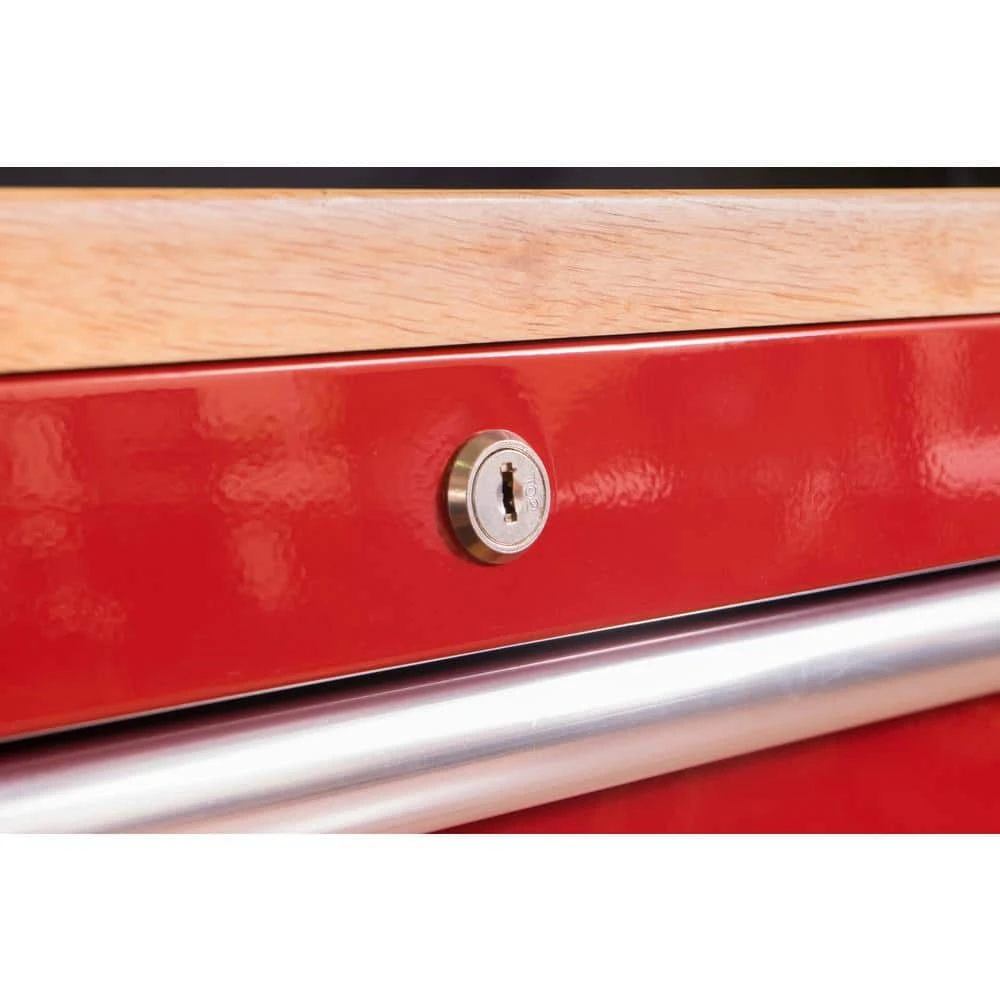 Built for its functional workspace and large storage capacity the Husky 52 in. 9-Drawer 24.5 in. D mobile workbench with Stainless Steel Pegboard is the perfect combination for your tool storage system. This mobile work center has large, 5 in. x 2 in. casters and a steel tubular side handle, which allow you to easily move it, even when fully loaded. Each drawer is equipped with 100 lbs. rated soft closing ball bearing slides. The top long drawer and 2 deep bottom drawers have double sets of 100 lbs. rated slides to enable you to store your heavier bulk items. It is constructed with heavy 21-Gauge steel and is strong enough to support 1,500 lbs. and has 20,527 cu. in. storage capacity. The 1 in. thick solid wood top is sealed with a protective coating to protect it from the elements. The pegboard has peg holes spaced 1 in. on center and accommodates most standard size 1/4 in. and 1/8 in. peg hooks and has 150 lbs. weight capacity.