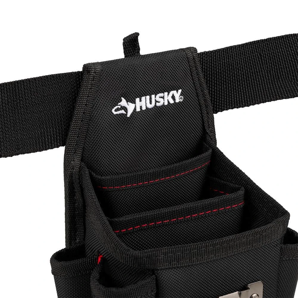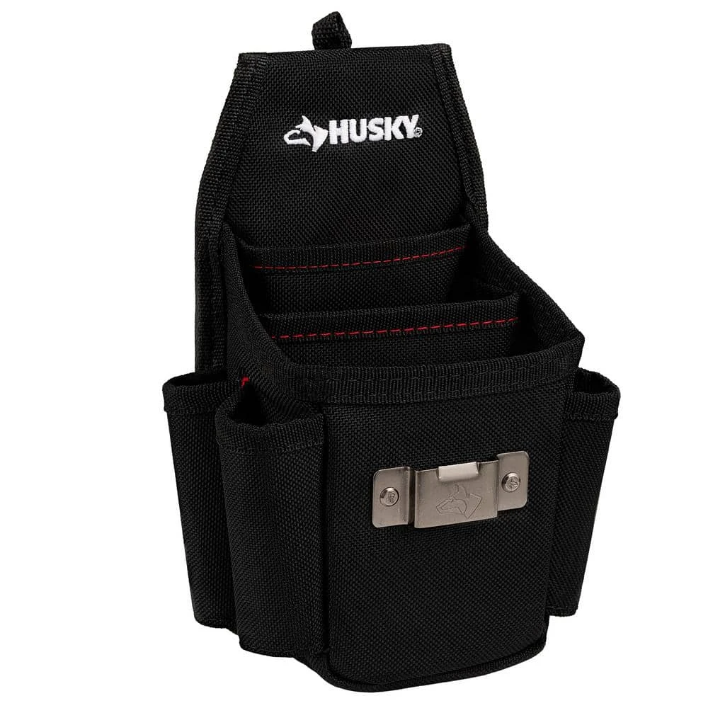 The Husky Utility Tool Belt Pouch is just what you need to carry a lot of your tools that you need to keep on you while you work. It holds everything from tape measures to notepads to small tools to your long tools. This tool belt pouch is made to last with heavy-duty fabric. It has a padded flap that is easily attaches over a belt without removing it or fits in a pants pocket.