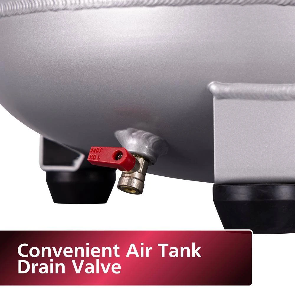 - Air Tank Drain Valve: Includes an easy-to-use air tank drain valve for simple maintenance, helping to remove moisture and extend the lifespan of the aluminum tank in various conditions effectively.