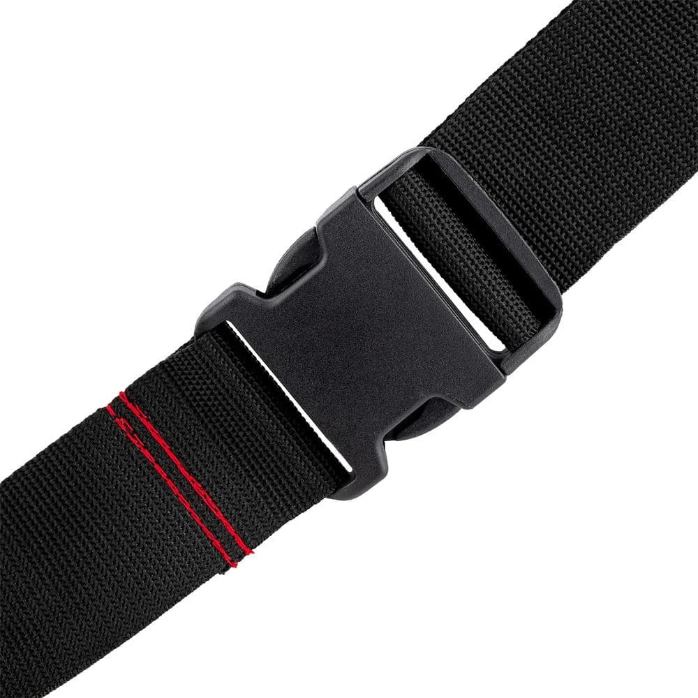- Tool belt features adjustable quick release belt buckle