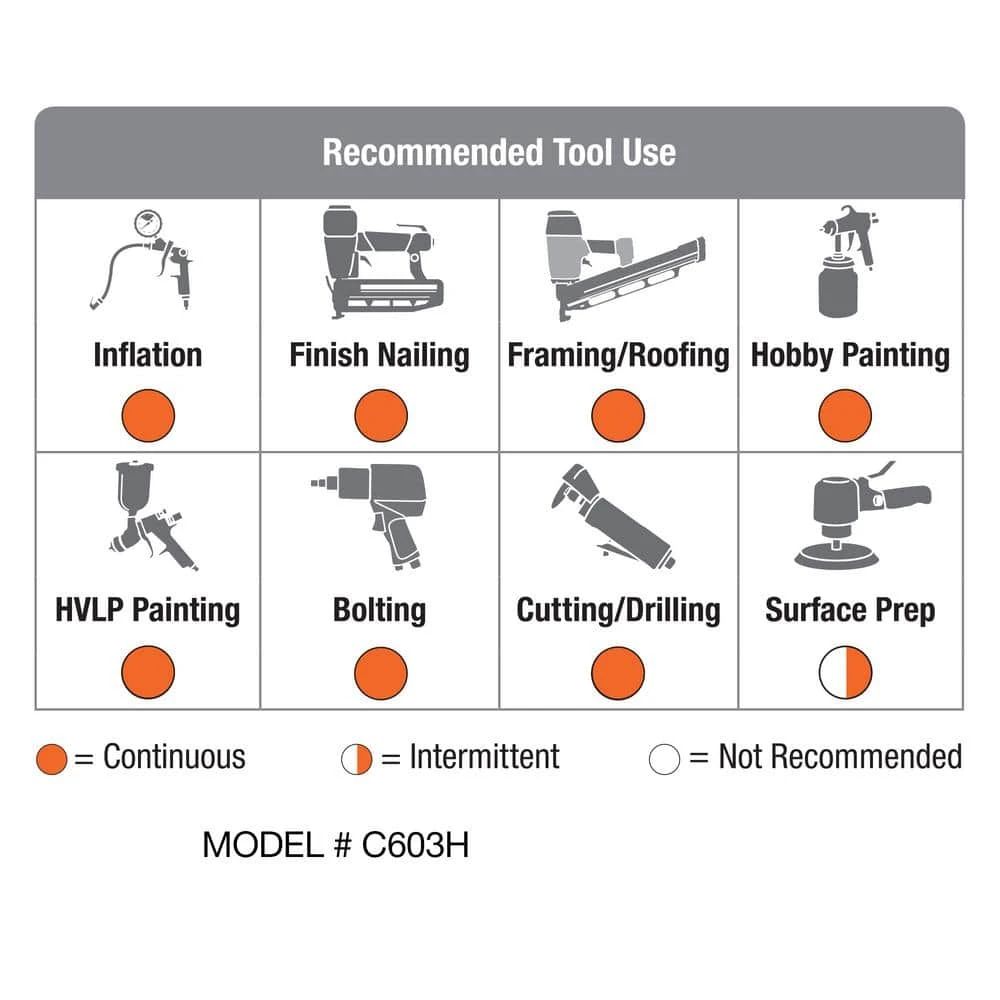 - Perfect for inflation, finish nailing, framing/roofing, hobby painting, bolting, and cutting/drilling