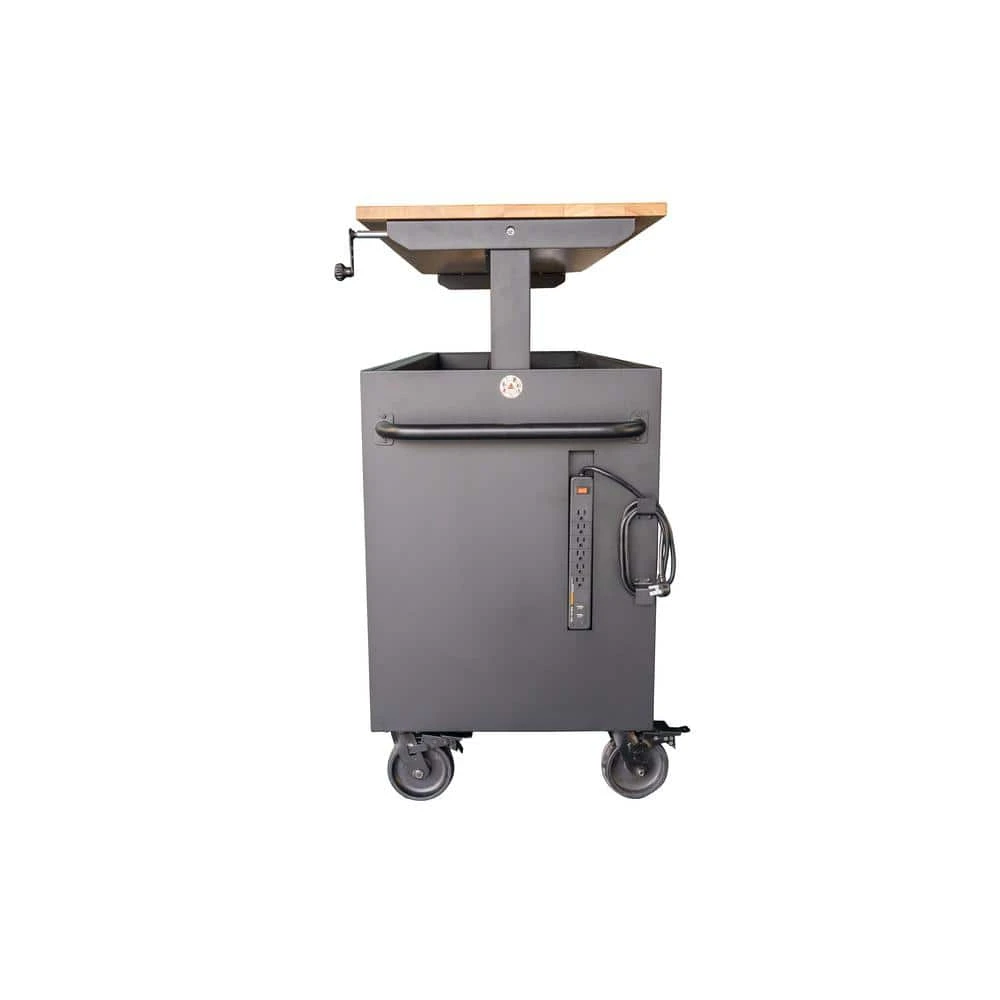 The Husky 72 in. 18-Drawer Mobile Workbench adjustable height matte black tool chest has a revolutionary feature that allows you to adjust the height of the solid wood work surface. A removable crank handle raises and lowers the top anywhere between 39 in. to 52 in. above the floor. This innovative design on this adjustable height workbench allows a better ergonomic standing position, which can help reduce strain on the body and joints. This 72 inch matte black tool chest is made with 19-gauge steel and is 24 in. deep -which is 6 in. deeper than most standard rolling tool cabinets- providing more usable storage space. This mobile workbench is strong enough to support 3,000 lbs. and has 33,545 cu. in. capacity. The 1.2 in. thick, solid wood top is coated with polyurethane for added utility and durability. Charge your tools with the built-in, 6-outlet, 2 USB power center. The 100 lbs. rated, soft-close drawer slides on the 72 inch workbench keep the drawers from accidentally opening or from slamming shut. Drawer liners are included to protect and keep your tools in place. The top long drawer and three bottom drawers are equipped, with double 120 lbs. soft closing drawer slides for increased weight capacity up to 240 lbs. For added security, this unit is fitted with a key and lock system. This mobile work center has 6 large, 6 in. x 2 in. all swivel casters and a steel tubular side handle, which allow you to easily move around, even when fully loaded.